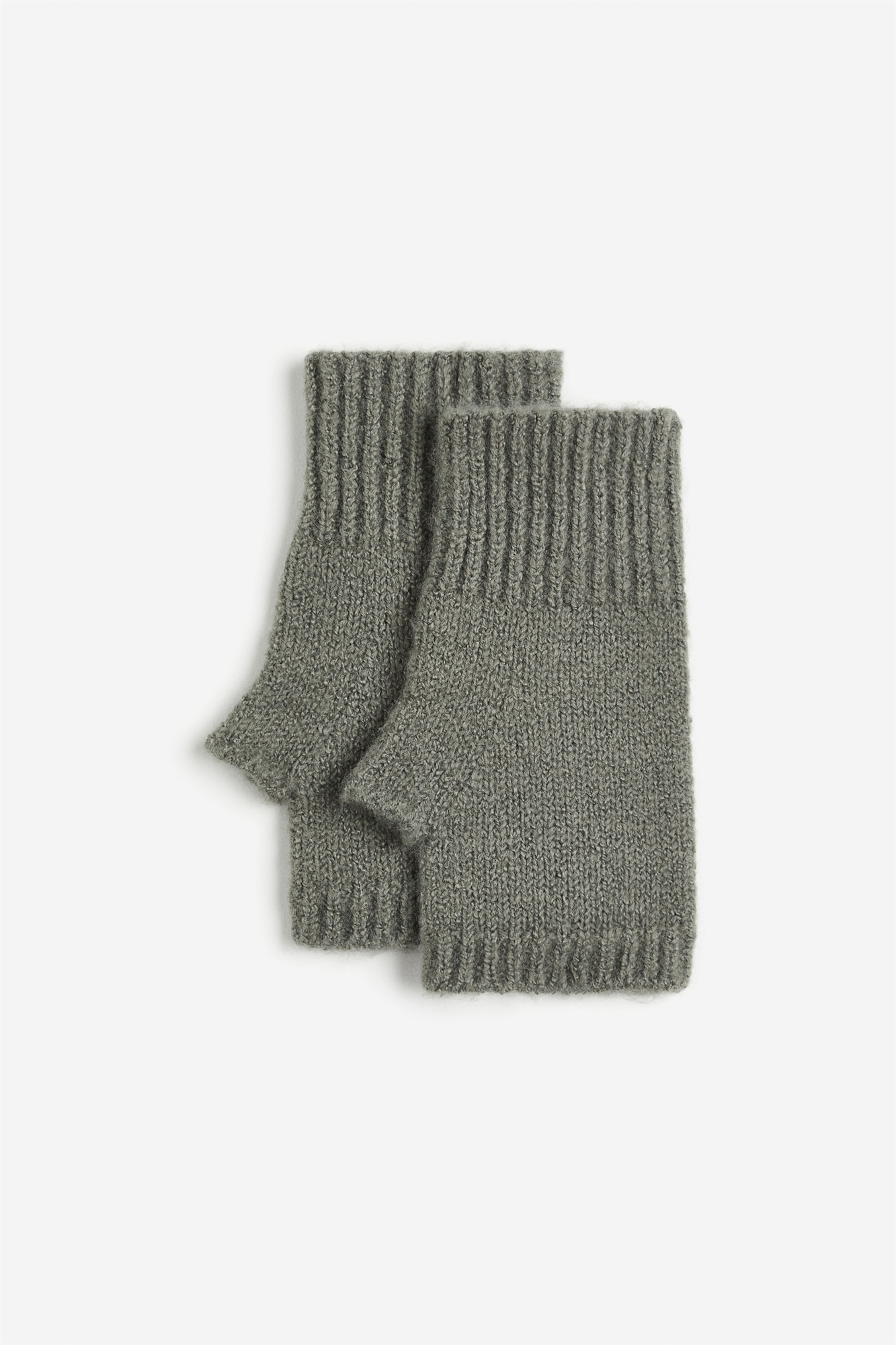 Грелки на запястья из мягкого трикотажа с добавлением шерсти, с отверстиями для больших пальцев и ребристой отделкой сверху и снизу.