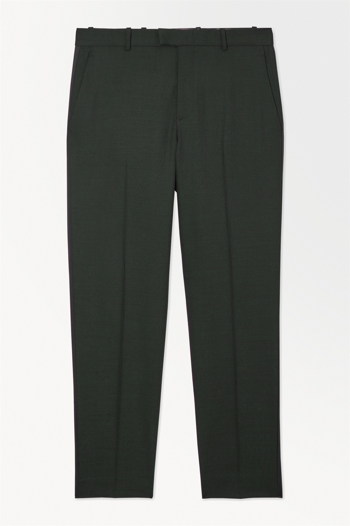Эта модель входит в коллекцию COS ATELIER, нашу лимитированную капсульную коллекцию, основанную на принципах роскоши и исключительного дизайна. CUT Эти брюки - идеальный партнер для пиджака-смокинга из этой коллекции. Точно сшитая модель имеет зауженную штанину, которая опирается на ботинок, складки и узкие прорезные карманы. Костюм-двойка создает элегантный ансамбль, но наши стилисты рекомендуют сочетать брюки с трикотажными изделиями для менее формальных случаев. МАТЕРИАЛ Фактурный материал из смеси шерсти зеленого цвета имеет тонкий муаровый эффект. Боковые полоски выполнены из атласа, сочетающегося по цвету. Тщательно продумана каждая деталь, от глухих швов до застежки на пуговицах на поясе, которая позволяет подогнать модель по фигуре. 57% шерсть RWS, 41% полиэстер, 2% эластан/сухая чистка Длина бокового шва в размере 48 = 100 см/Модель носит размер 48.