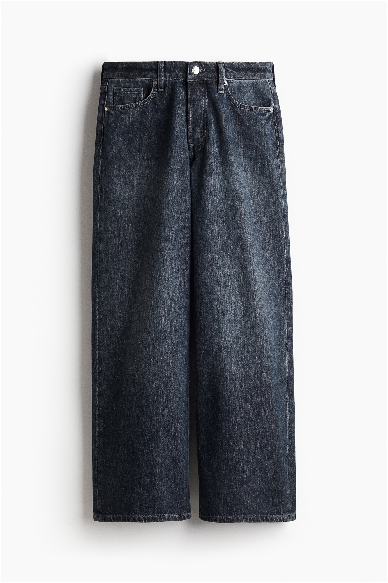 Джинсы с 5 карманами из жесткого хлопкового денима, который сначала кажется твердым, но затем смягчается и ослабевает при носке. Широкие штанины со свободной посадкой от талии до бедра и мешковатой посадкой от бедра до подола. Заниженная талия с ширинкой на пуговице. Удлиненная длина, созданная для того, чтобы ниспадать по ноге с эффектом стопки. Джинсовое заявление, которое проходит дистанцию.