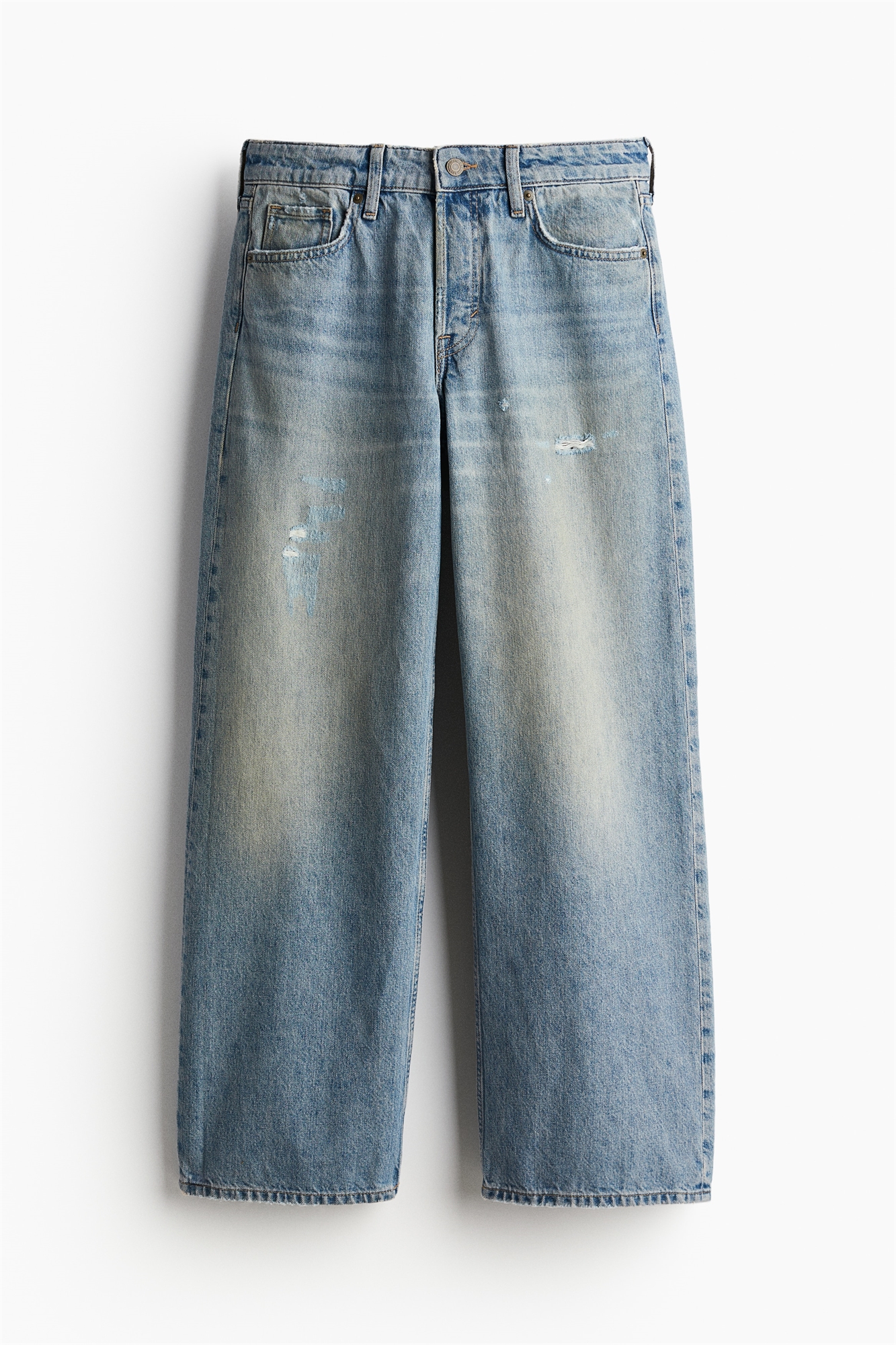 Джинсы с 5 карманами из жесткого хлопкового денима, который сначала кажется твердым, но затем смягчается и ослабевает при носке. Широкие штанины со свободной посадкой от талии до бедра и мешковатой посадкой от бедра до подола. Заниженная талия с ширинкой на пуговице. Удлиненная длина, созданная для того, чтобы ниспадать по ноге с эффектом стопки. Джинсовое заявление, которое проходит дистанцию.
