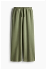 Брюки-джоггинги свободного кроя из потной ткани с мягким начесом внутри. Эластичный пояс с утяжкой, незаметные карманы в боковых швах и широкая штанина.