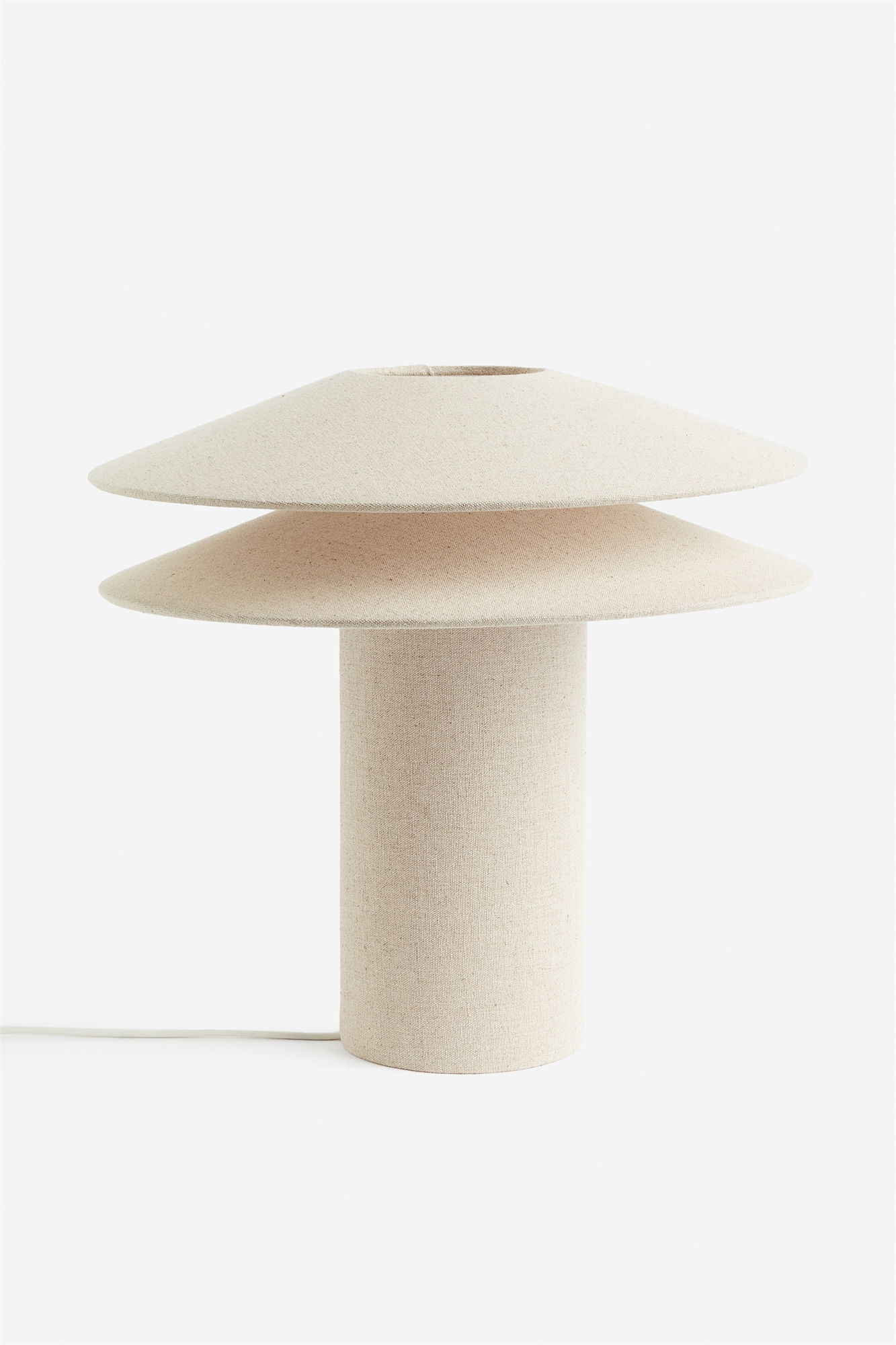 Настольная лампа с абажуром из двух наклонных льняных дисков, которые рассеивают свет и создают теплую и уютную атмосферу. Шнур с пластиковым выключателем. Патрон E14. Максимальная мощность 6 Вт. Лампочка в комплект не входит. Общая высота 32 см. Диаметр абажура 35 см.