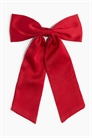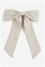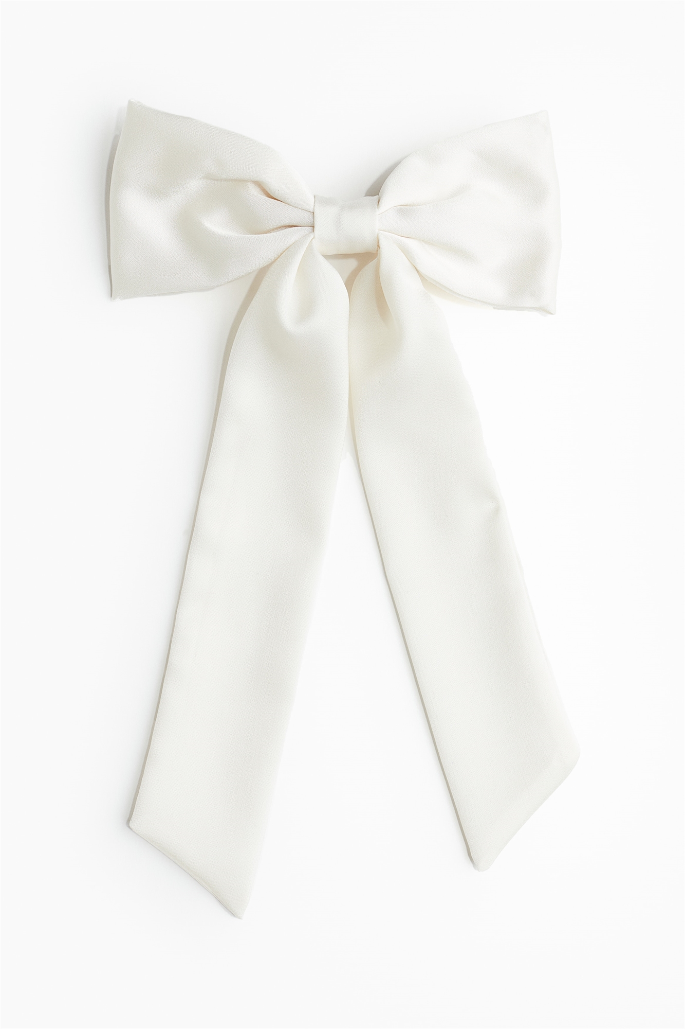 Металлическая заколка для волос, украшенная большим бантом из мягкой ткани.