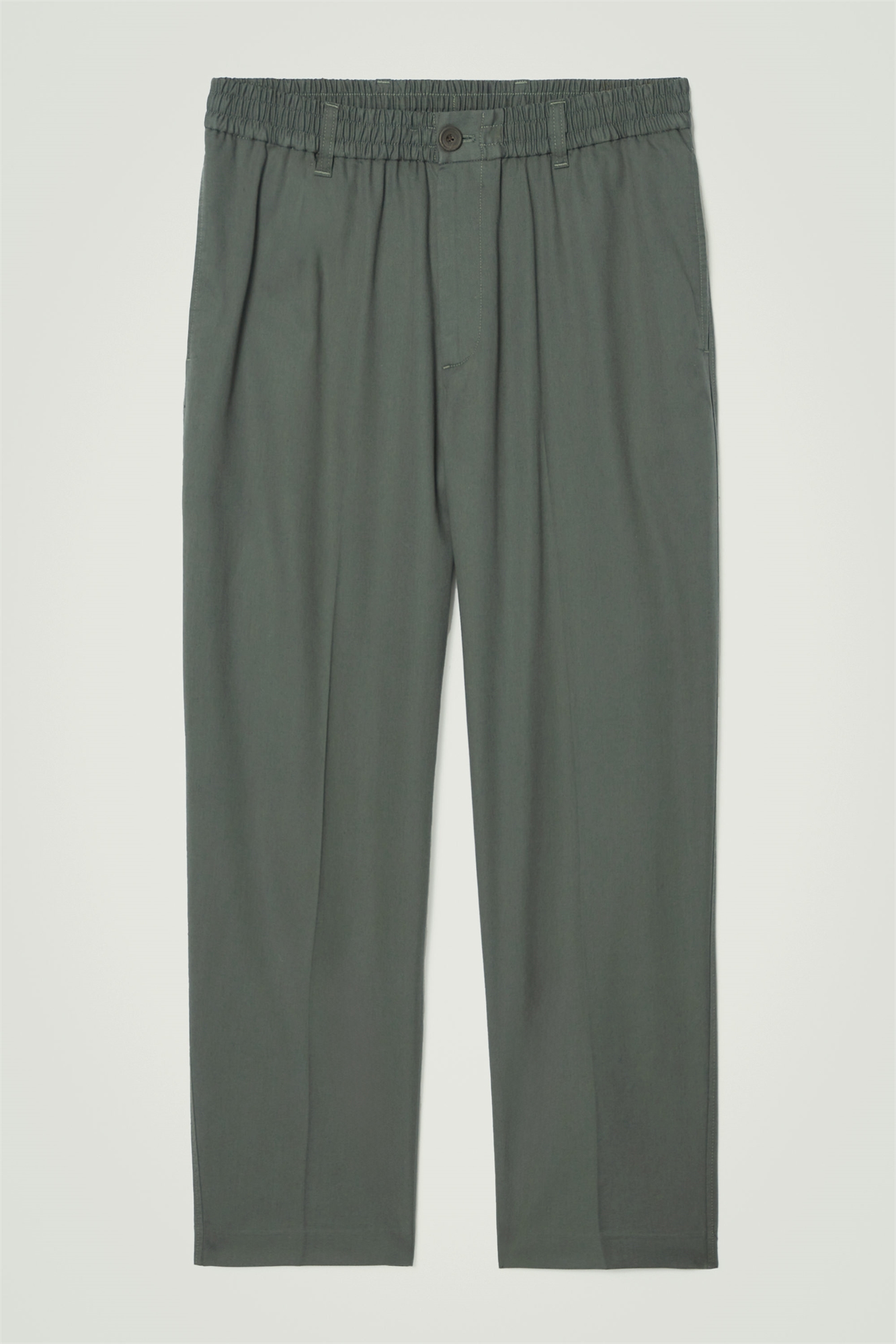 Непринужденность и элегантность одновременно: эти саржевые брюки зеленого цвета изготовлены из смеси легкого TENCEL™ Lyocell и хлопка. Укороченные, зауженные штанины, эластичный пояс с внутренним шнурком и несколько практичных карманов делают их незамысловатым выбором для офиса или отдыха. Свободный крой Прессованные складки TENCEL™ - бренд компании Lenzing AG. TENCEL™ Lyocell производится из возобновляемых источников древесины; 99% используемой воды и химикатов перерабатывается Внешний материал: 68% TENCEL™ Lyocell, 32% хлопок. Детали исключены/Машинная стирка Внутренняя длина ноги в размере 48 = 70,2 см/Модель носит размер 48