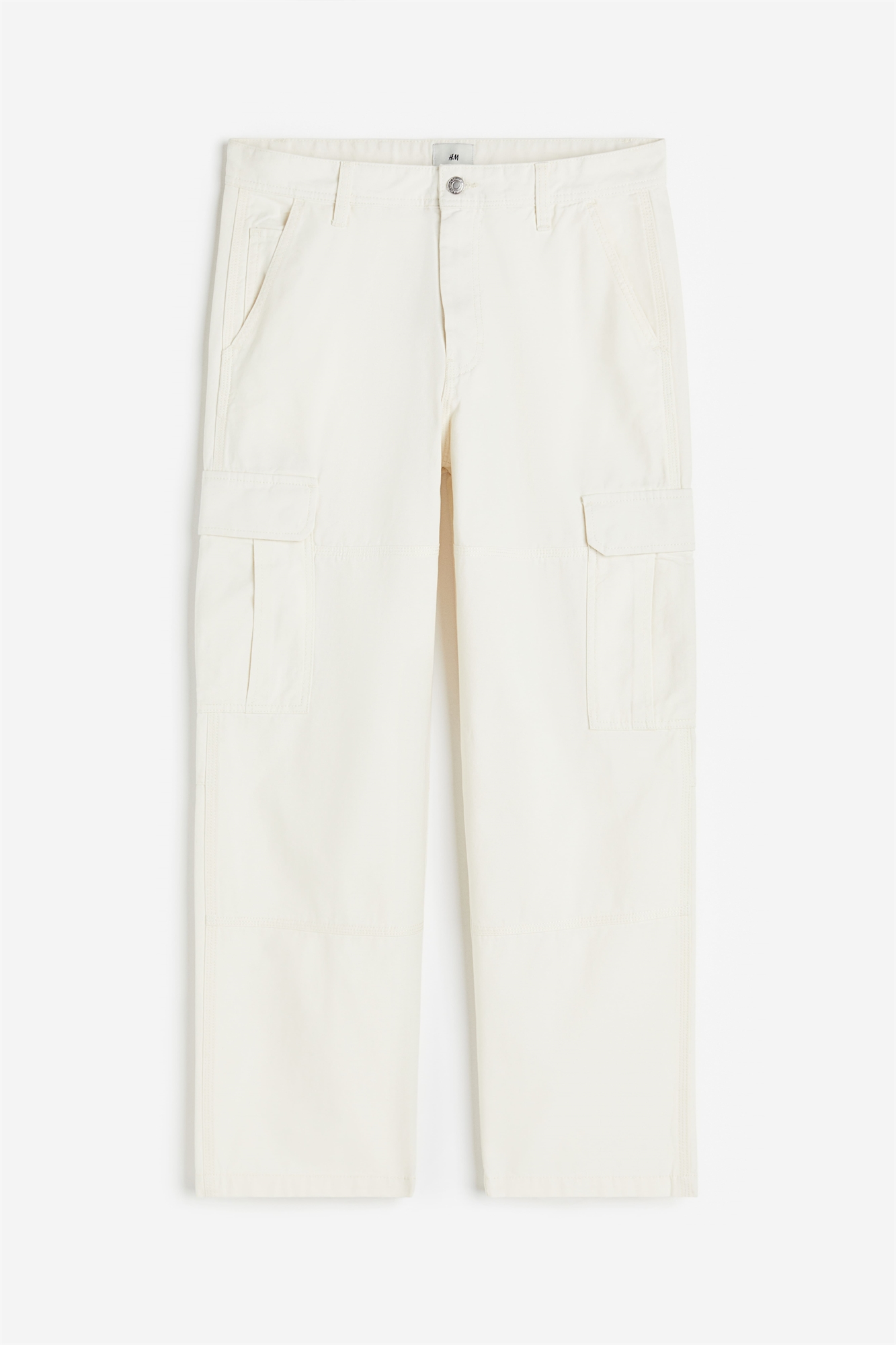 Брюки-карго из прочного хлопкового оксфорда с ширинкой на молнии и пуговице. Диагональные боковые карманы, карман для монет, открытые задние карманы и накладные карманы на ногах с кнопками. Свободный крой для непринужденного, но не чрезмерного силуэта.