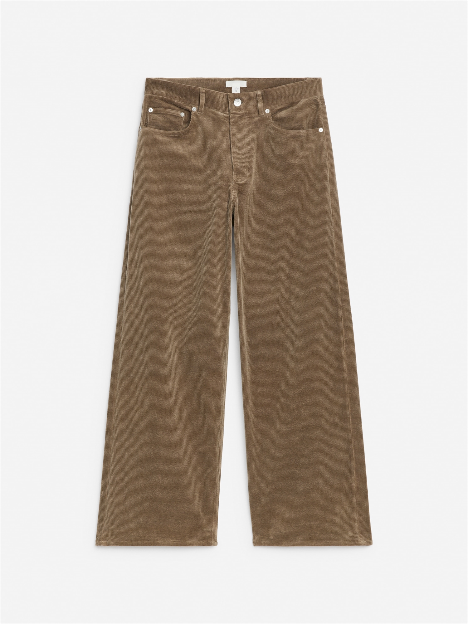 Хлопковые вельветовые брюки со стрейчем для комфорта. Это брюки с заниженной талией, свободным кроем и широкими ногами. Ширинка на молнии и застежка на пуговицу. Внутренняя длина штанины 78 см (размер 38).