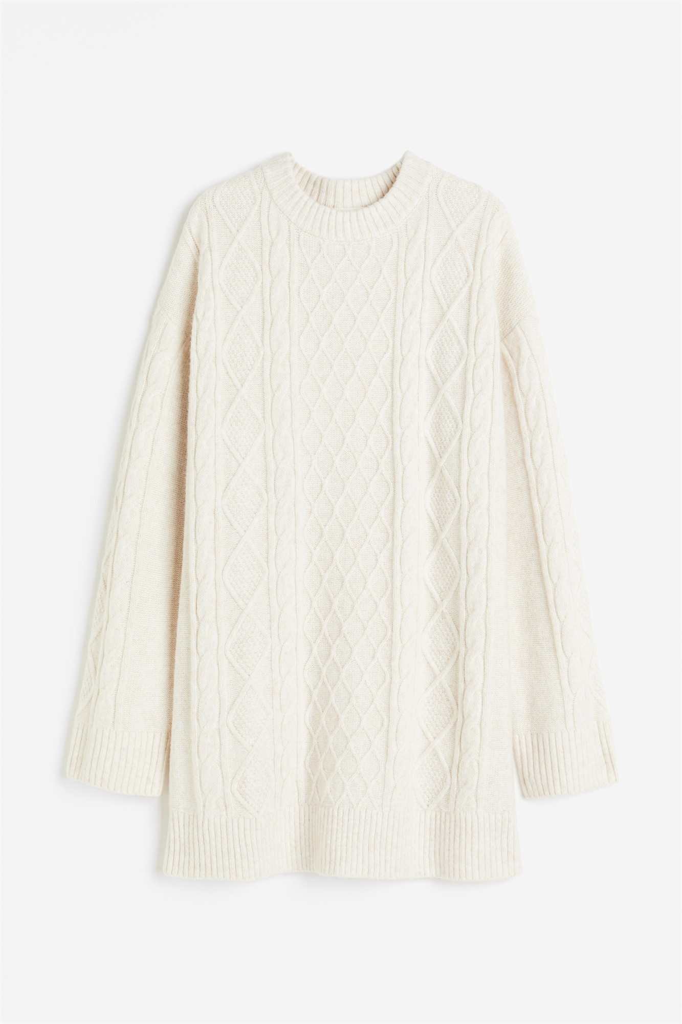 Свободное платье из мягкого трикотажа с добавлением шерсти. Низкие спущенные плечи, длинные рукава и тесемки по вырезу, манжетам и подолу.