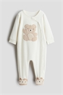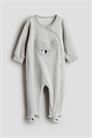 Спальный костюм из мягкого велюра с кнопками для удобства переодевания. Окантовка по вырезу горловины и манжетам и полные ножки с эластичной вставкой на пятке для комфортной посадки. Противоскользящие протекторы на подошве в размерах 6/9M-4Y.