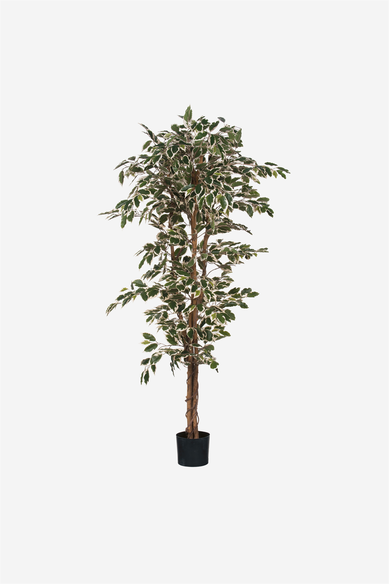 Готовы наслаждаться беззаботностью? Комнатные искусственные растения от Mica Decorations неотличимы от настоящих, но не требуют ухода. С этим березовым фикусом вы сразу же сможете привнести в свой дом больше зелени. Свежие, игривые листья имеют детальный рисунок со светлыми краями. Листья разных размеров и оттенков зеленого цвета выглядят совсем как настоящие! Искусственное растение прочно закреплено в черном пластиковом горшке, но перед использованием его все равно нужно смоделировать. Поместите его в таком виде после разворачивания или придайте растению изюминку, поставив его в красивый плантатор. В развернутом виде растение имеет размеры H180 x Ø90 см.