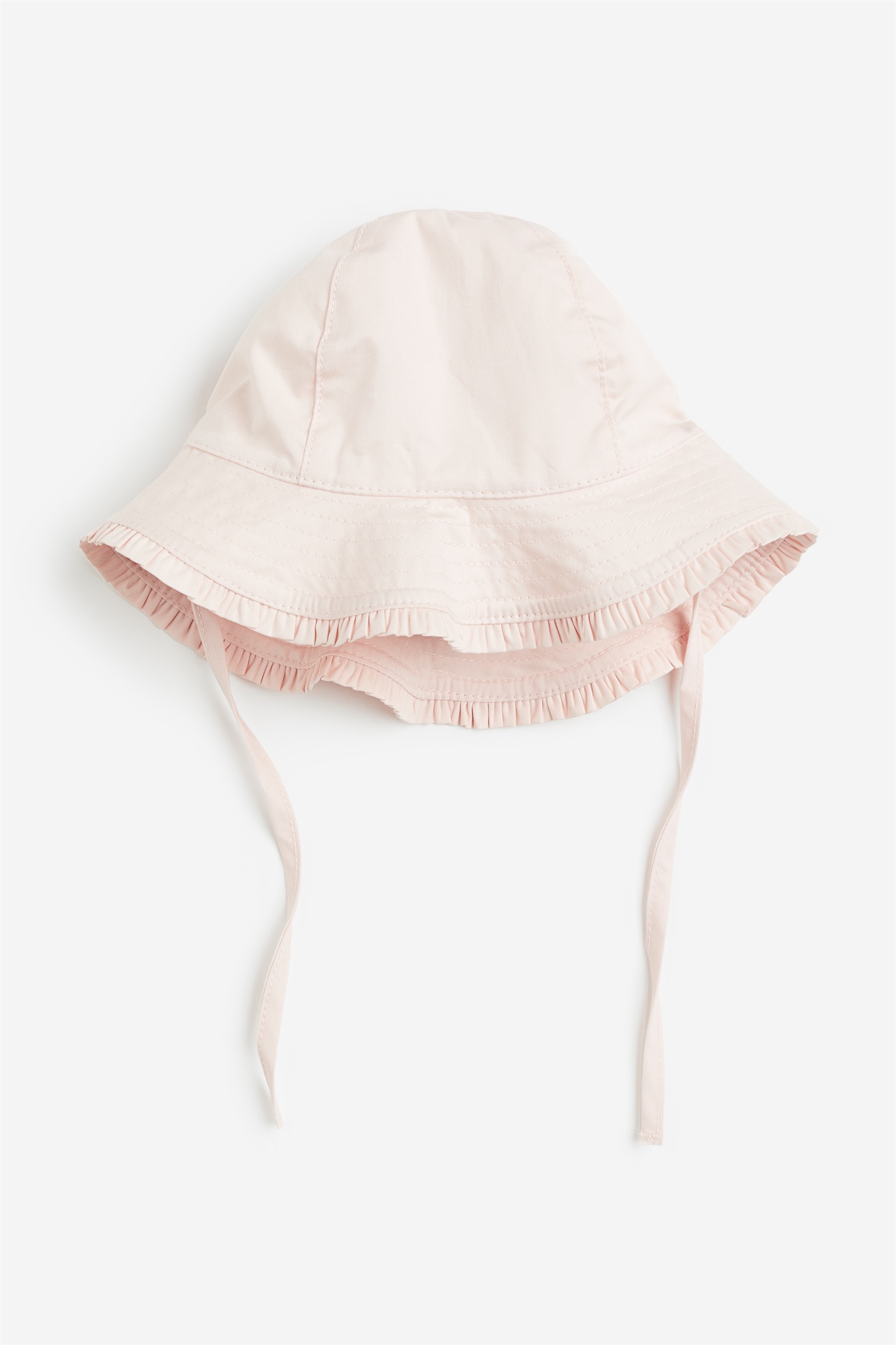 Солнцезащитная шляпа из воздушного хлопкового полотна с волнистым оборчатым краем и завязками под подбородком. На подкладке.