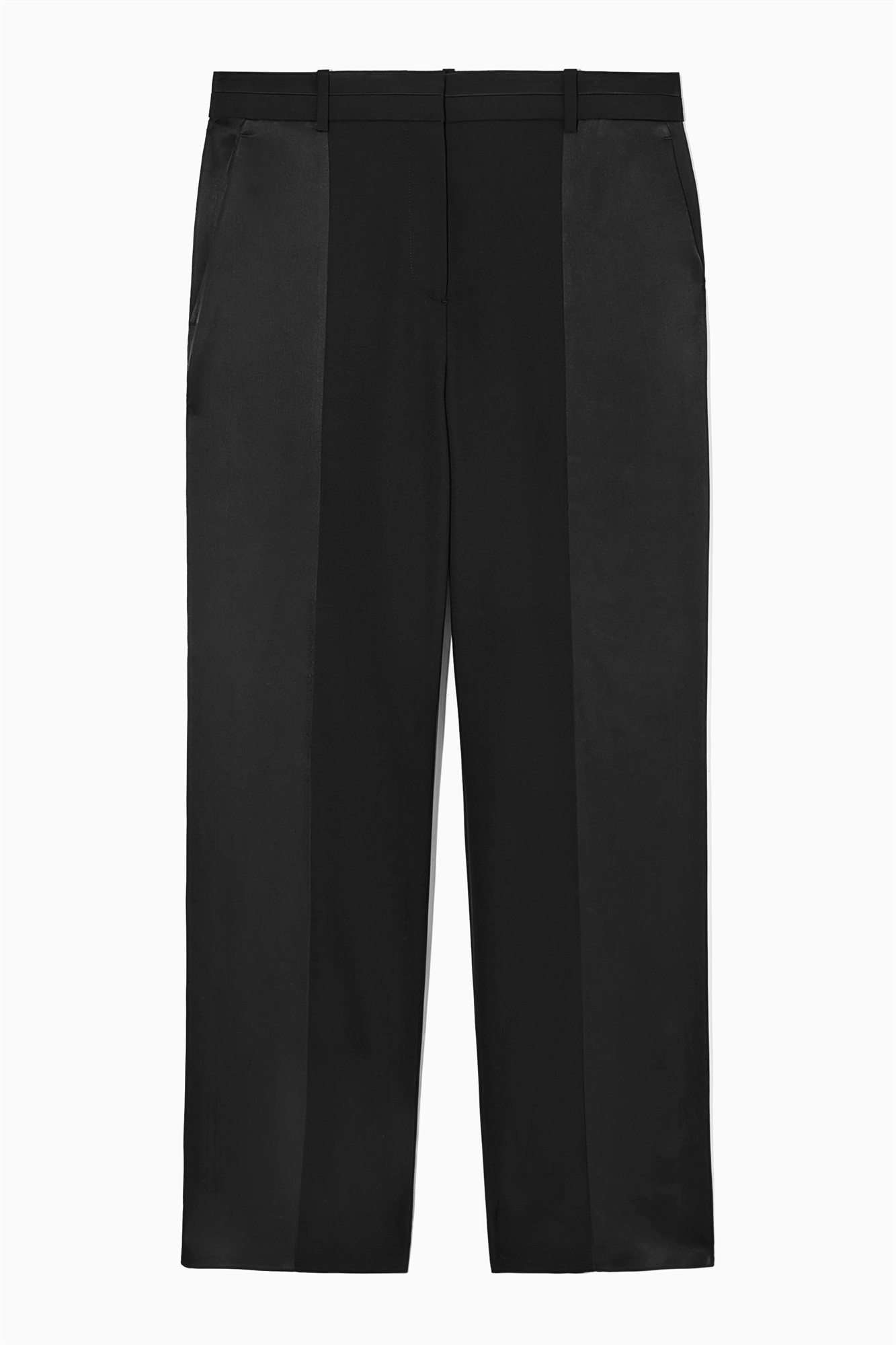 Эти брюки, появившиеся в осенне-зимней коллекции, представляют собой современную интерпретацию классического смокинга. Они имеют сужающуюся форму прямых брючин, четкие заутюженные складки, пару накладных карманов и регулируемую планку на талии, позволяющую точно подогнать силуэт. Глянцевые атласные панели вдоль каждой стороны контрастируют с матовой тканью из шерстяного бленда. Для полного комплекта сочетайте их с блейзером и жилетом. Регулярный крой Застежка на крючок и планку, карманы в боковых швах Сертифицированы в соответствии со стандартом ответственной шерсти для защиты благополучия овец и окружающей среды Оболочка: 96% шерсти RWS, 4% эластана. Без учета отделки / Сухая чистка Внутренняя длина ноги размера EU 36 составляет 77 см / Модель носит размер EU 36