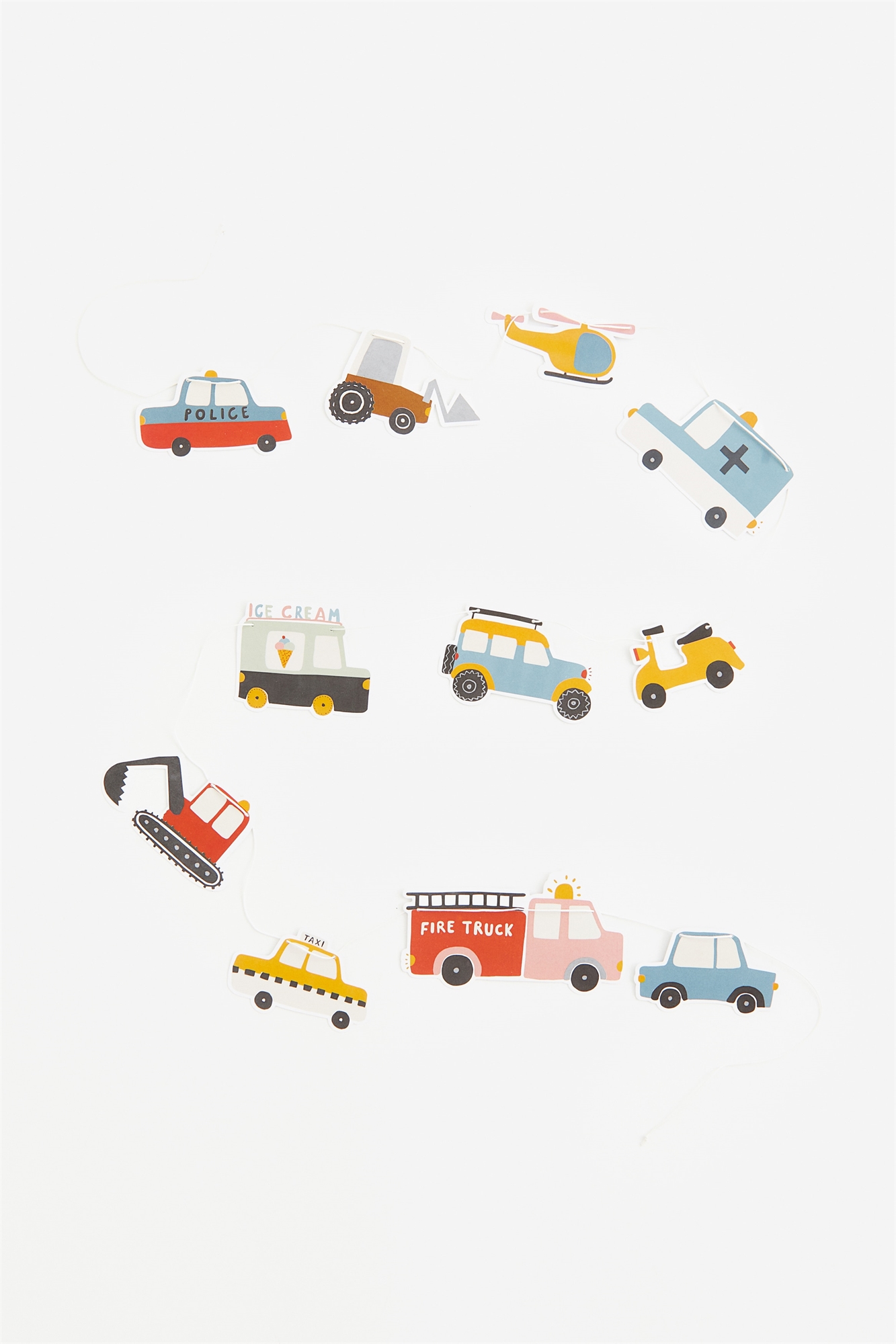 Гирлянда с бумажными украшениями в форме автомобилей разных размеров. Длина 180 см.