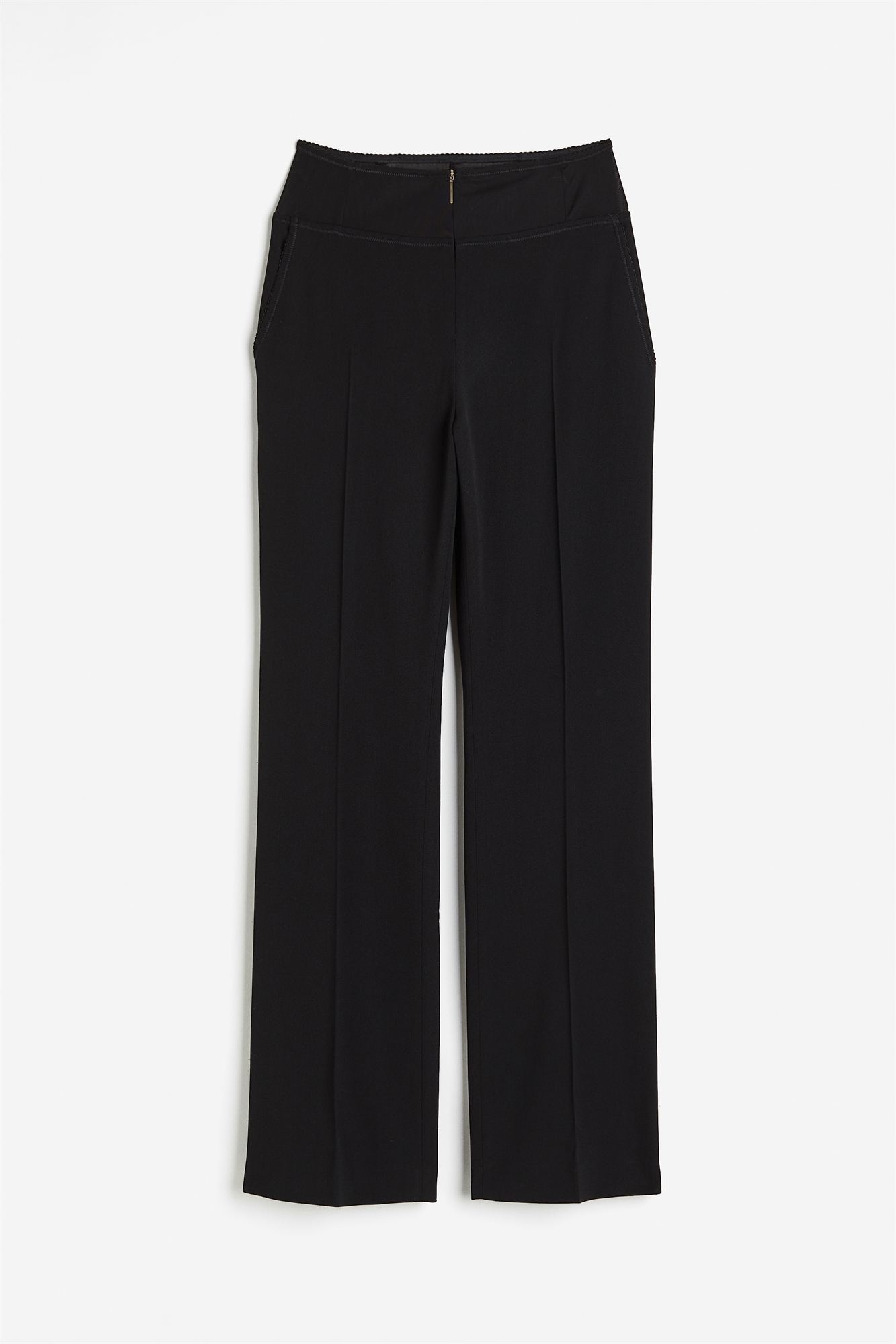 Коллекция Studio. Брюки из тканого материала из смеси шерсти и вискозы. Регулярная талия и модное дополнение в виде пояса из сетки в бельевом стиле, который придает изысканный вид. Потайная застежка-молния спереди, диагональные передние карманы, прорезные задние карманы и складки спереди и сзади. Эластичная отделка пико вокруг пояса и передних карманов придает брюкам изящный завершающий штрих.