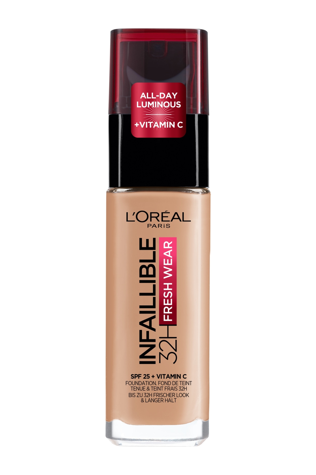 Макияж L'Oréal Paris Infaillible 32H Fresh Wear обеспечивает длительный свежий вид и идеальное покрытие - на весь день. Секрет заключается в дышащей технологии Oxygen. Она сочетает в себе невесомость и длительный свежий вид. Макияж выглядит свежим до 32 часов и придает коже естественное покрытие без эффекта маски. Легкая текстура легко смешивается, не размазывается и не обесцвечивается. Высокое покрытие надежно скрывает недостатки и выравнивает цвет лица. Благодаря водостойкой формуле макияж выдерживает дождь, жару, пот и даже слезы.