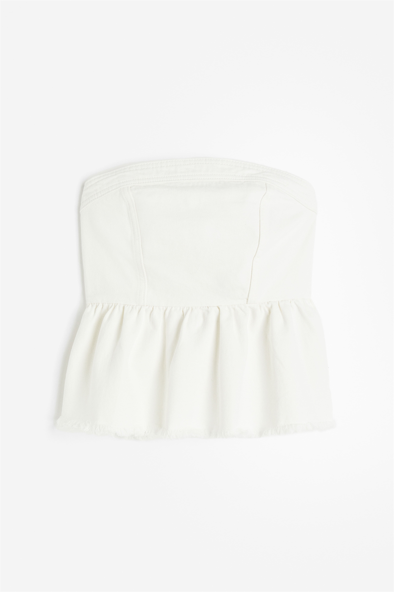 Облегающий топ-бюстье из плотного хлопкового денима с видимыми швами спереди и сзади. Потайная застежка-молния сзади, сборчатый шов на талии и расклешенный живот.