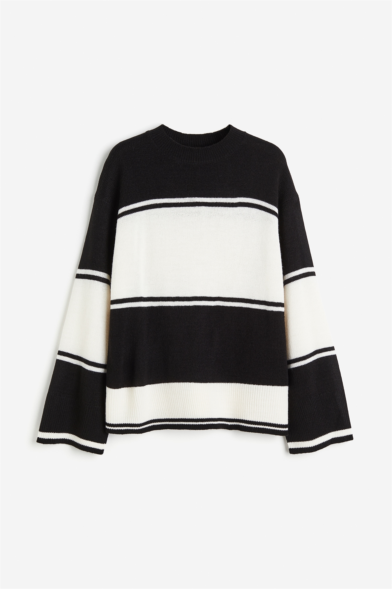 Слегка удлиненный джемпер из мягкого трикотажа. Свободный крой с круглым вырезом в рубчик, спущенными плечами, длинными рукавами и широкой тесьмой на манжетах и подоле.