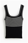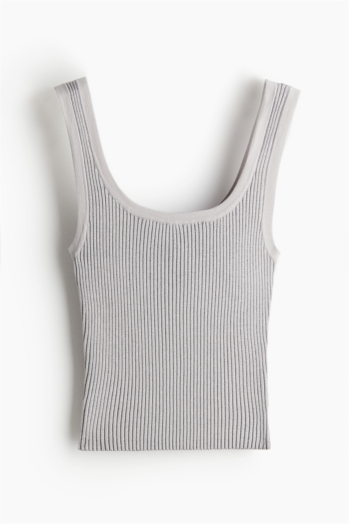 Облегающий жилет из тонкого трикотажа в рубчик с глубоким круглым вырезом спереди и сзади.