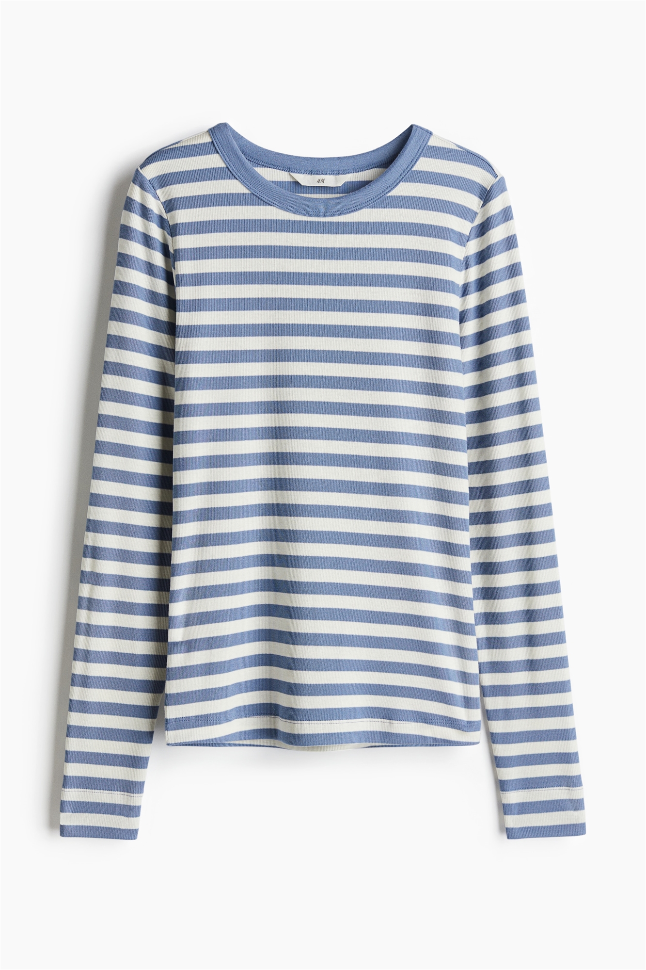 Облегающий топ из ребристого хлопкового джерси с круглым вырезом и узкой окантовкой. Длинные рукава и прямой подол.