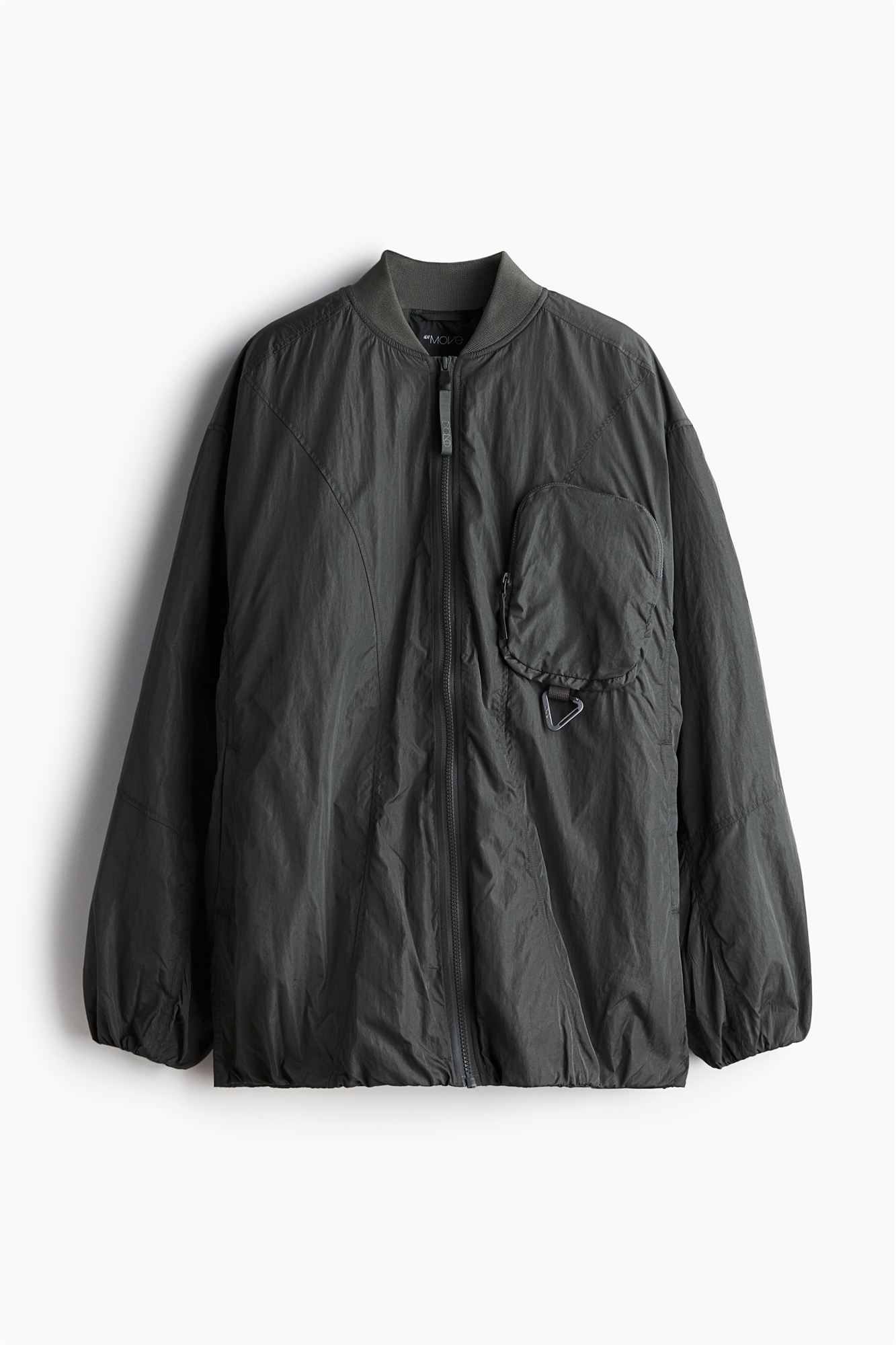 Куртка-бомбер с мягкой подкладкой из ветрозащитной и водоотталкивающей функциональной ткани, призванной сохранить вас сухим во время небольшого ливня и защитить от ветра. Свободный крой с небольшим ребристым воротником, застежкой-молнией спереди и спущенными плечами. Нагрудный карман на молнии с крючком-карабином и дополнительный сетчатый карман внутри. Накладные передние карманы, внутренний нагрудный карман и скрытая эластичная резинка на манжетах и подоле. Лямки для рюкзака с внутренней стороны для свободного ношения через плечи. На подкладке. Куртка изготовлена по технологии ThermoMove™, разработанной для сохранения тепла при понижении температуры, при этом она легкая и воздухопроницаемая.