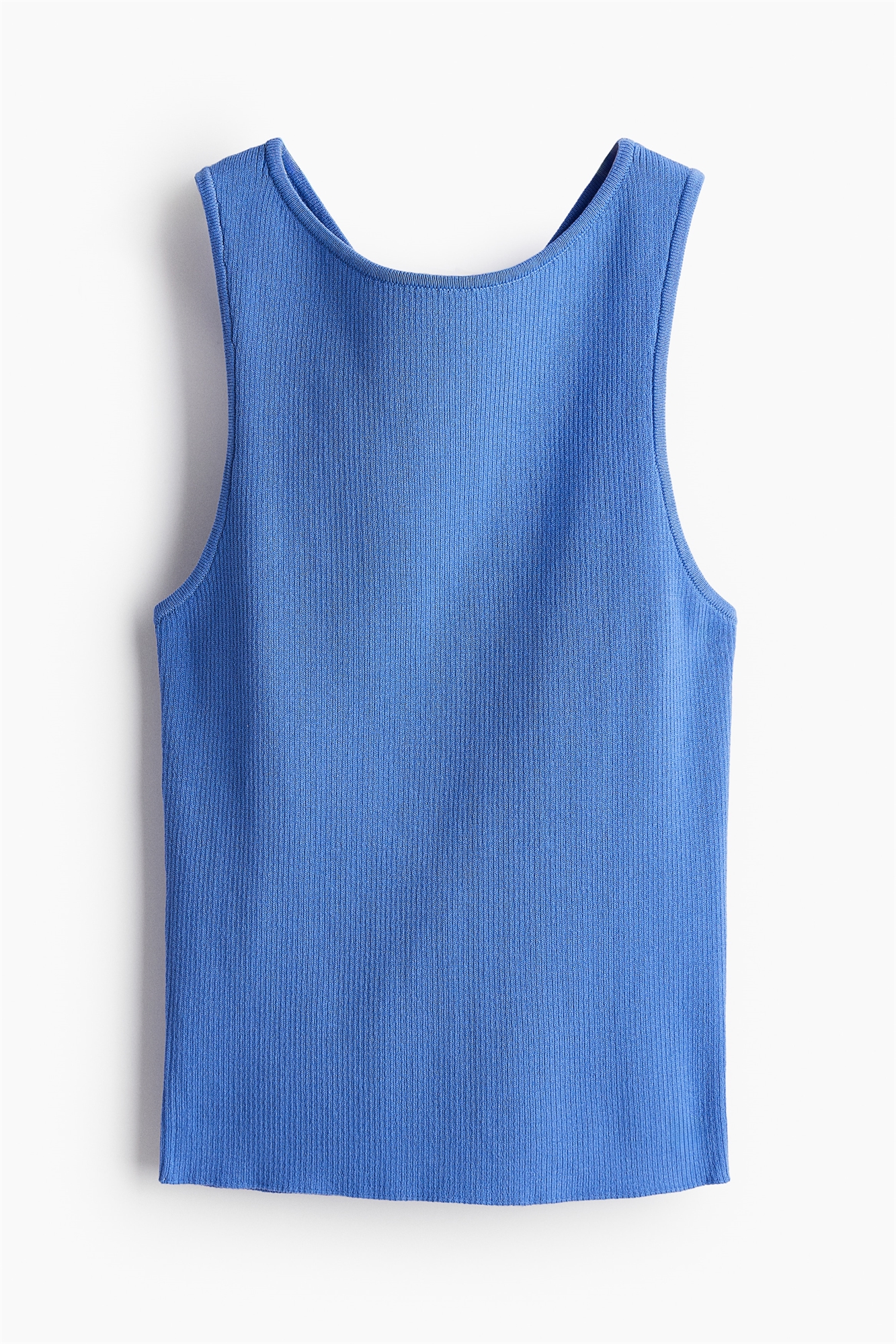 Облегающий жилет из мягкого трикотажа в рубчик с вырезом на спине и широкими бретелями, перекрещивающимися на спине.