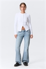 Джинсы с низкой посадкой, облегающим кроем и длинной штаниной. Джинсы изготовлены из органического хлопка с добавлением переработанного хлопка. Они имеют классический дизайн с 5 карманами и застежку-молнию.
