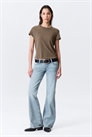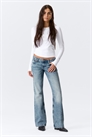 Джинсы с низкой посадкой, облегающим кроем и длинной штаниной. Джинсы изготовлены из органического хлопка с добавлением переработанного хлопка. Они имеют классический дизайн с 5 карманами и застежку-молнию.