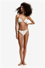 Треугольный бикини на подкладке, без проводов, с оверлочными краями и чашечками со съемными вкладышами, которые формируют бюст и обеспечивают хорошую поддержку. Завязки сзади и на шее.
