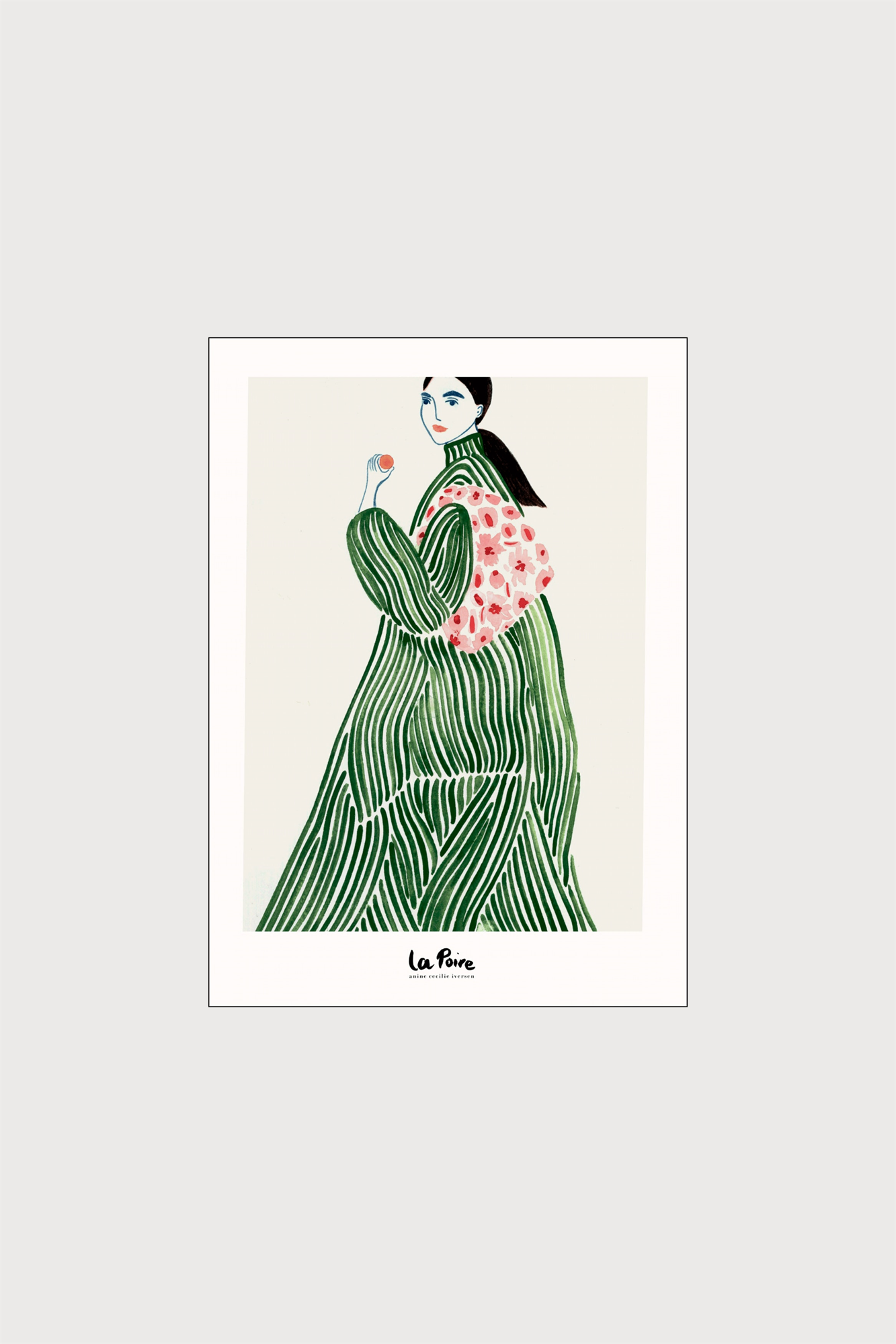 Данный арт-постер является репродукцией оригинальной работы "Green Coat", которая была написана акварелью в 2020 году. Репродукция была отсканирована, чтобы как можно точнее передать цвет и мазки кисти оригинальной работы.