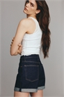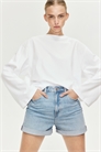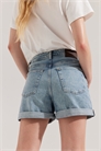 Шорты с 5 карманами из хлопкового денима, слегка тянущегося для большей легкости движений. Завышенная талия, ширинка на молнии и пуговице. Пришитые подвороты на подоле.