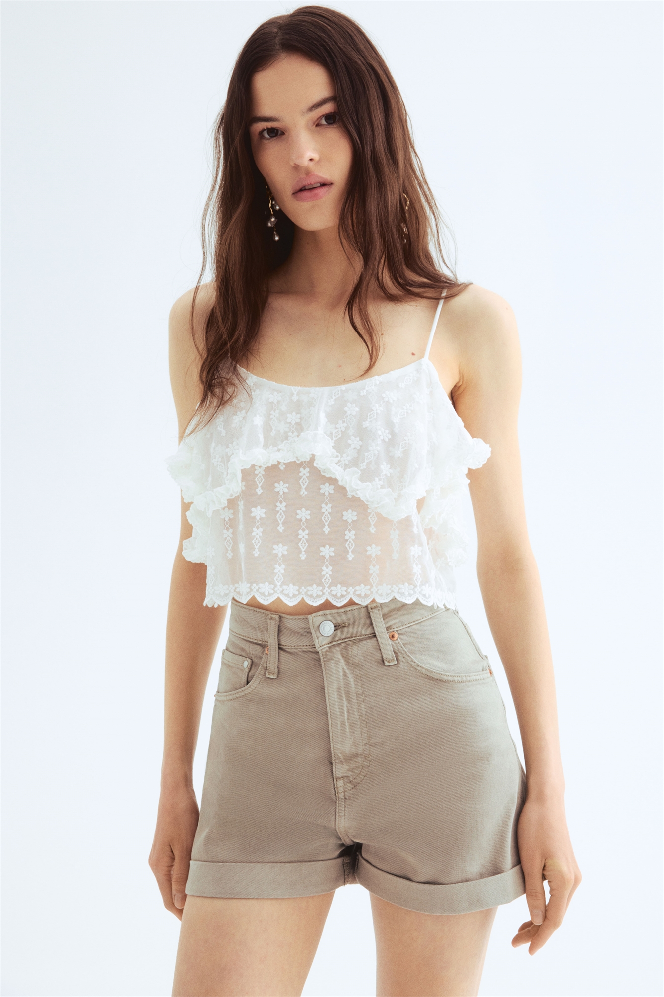 Шорты с 5 карманами из хлопкового денима, слегка тянущегося для большей легкости движений. Завышенная талия, ширинка на молнии и пуговице. Пришитые подвороты на подоле.