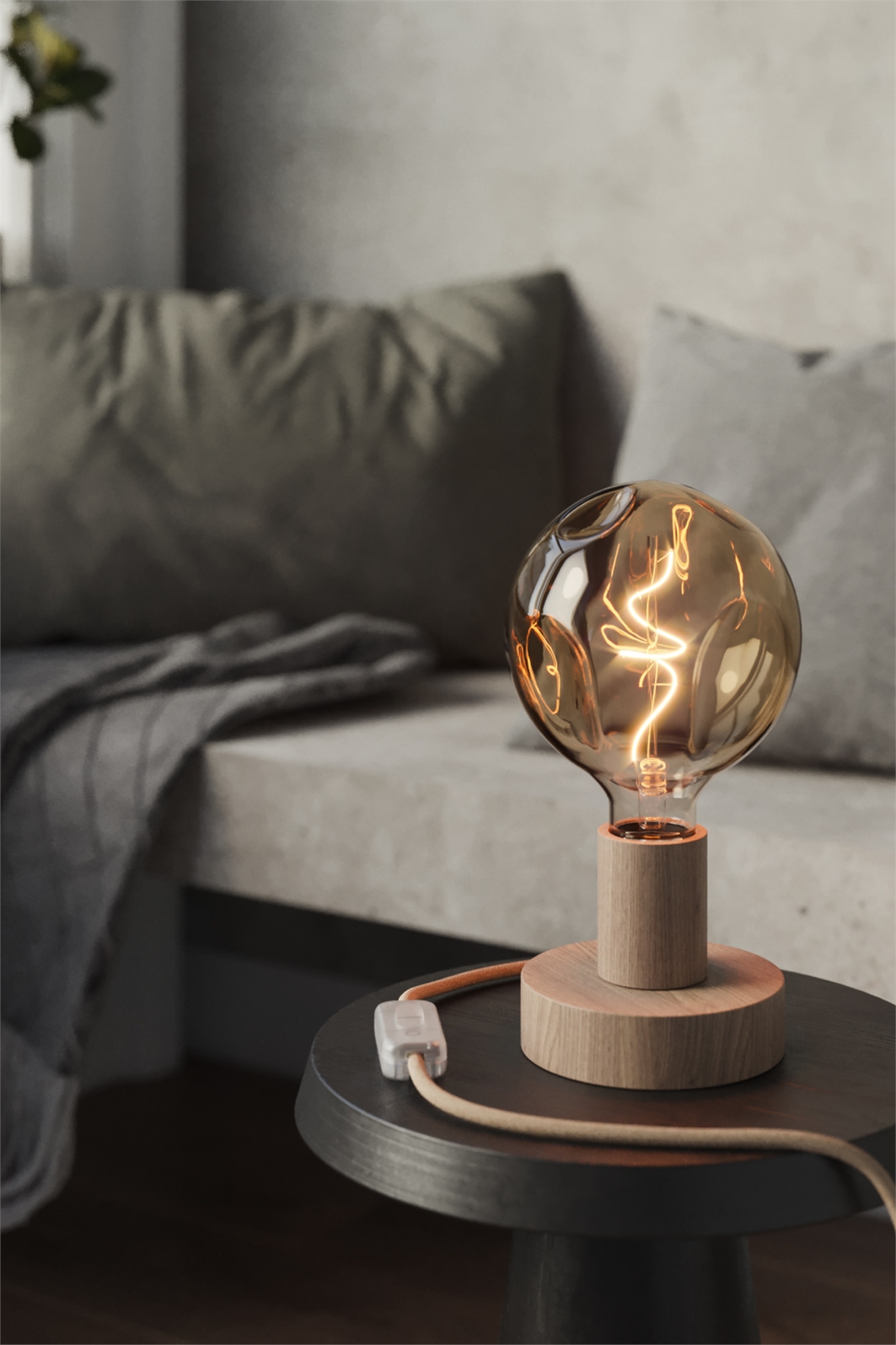 Настольная лампа из дерева с лампочкой в виде бугорка