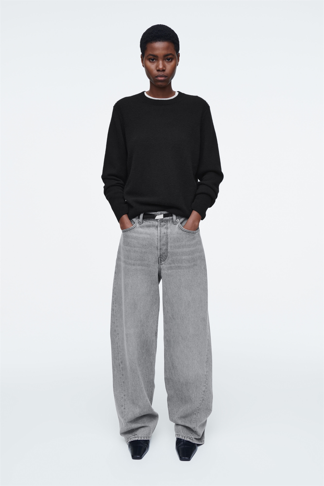 Джинсы Facade с заниженной талией напоминают модели 2000-х годов. Они изготовлены из органического и переработанного хлопкового денима и выполнены в универсальном сером цвете. Прямой фасон с круглыми швами для создания эффекта деконструкции, а также легкие потертости и дистресс для придания индивидуальности. Длинные прямые ноги, свободный крой, низкий пояс, застежка на молнию, классический дизайн с пятью карманами Органический хлопок выращен из семян, не содержащих ГМО, без использования химических удобрений и пестицидов Верхний материал: 80% органический хлопок, 20% переработанный хлопок. Детали исключены/Машинная стирка Внутренняя длина штанины в размере 27 = 79 см/Модель носит размер 27