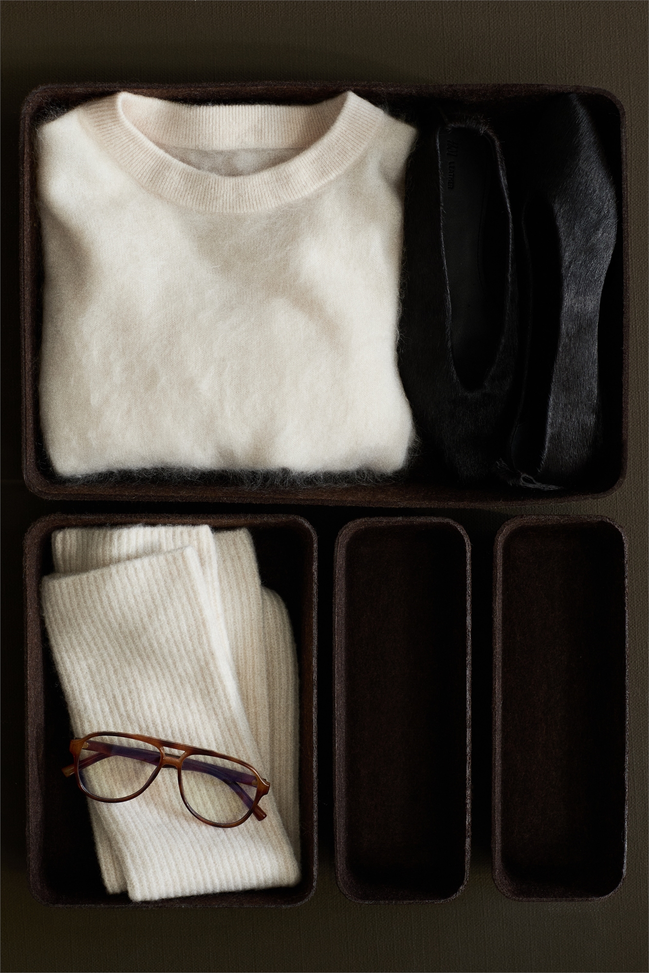 Набор из семи войлочных корзин для хранения, которые помещаются друг в друга для удобной организации пространства в любом уголке вашего дома. Используйте их по отдельности или в сочетании с корзинами других размеров. Высота 6,8 см. Ширина и длина 9x26 см, 20x27 см, 28x41,5 см.