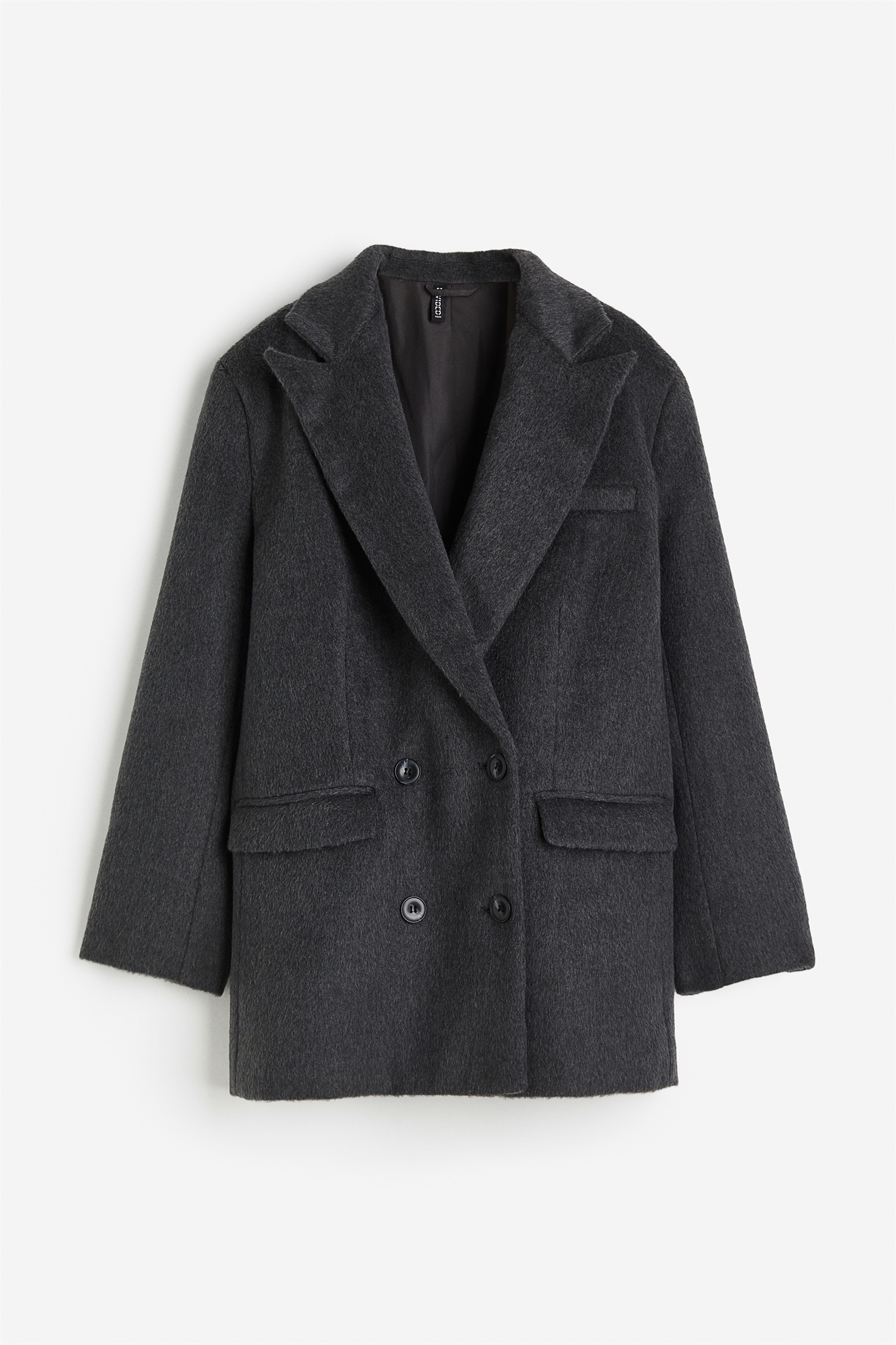 Двубортный блейзер оверсайз из мягкой войлочной ткани с широкими лацканами, пуговицами спереди и манжетами на пуговицах. Нагрудный карман, накладные передние карманы и один задний клапан. На подкладке.