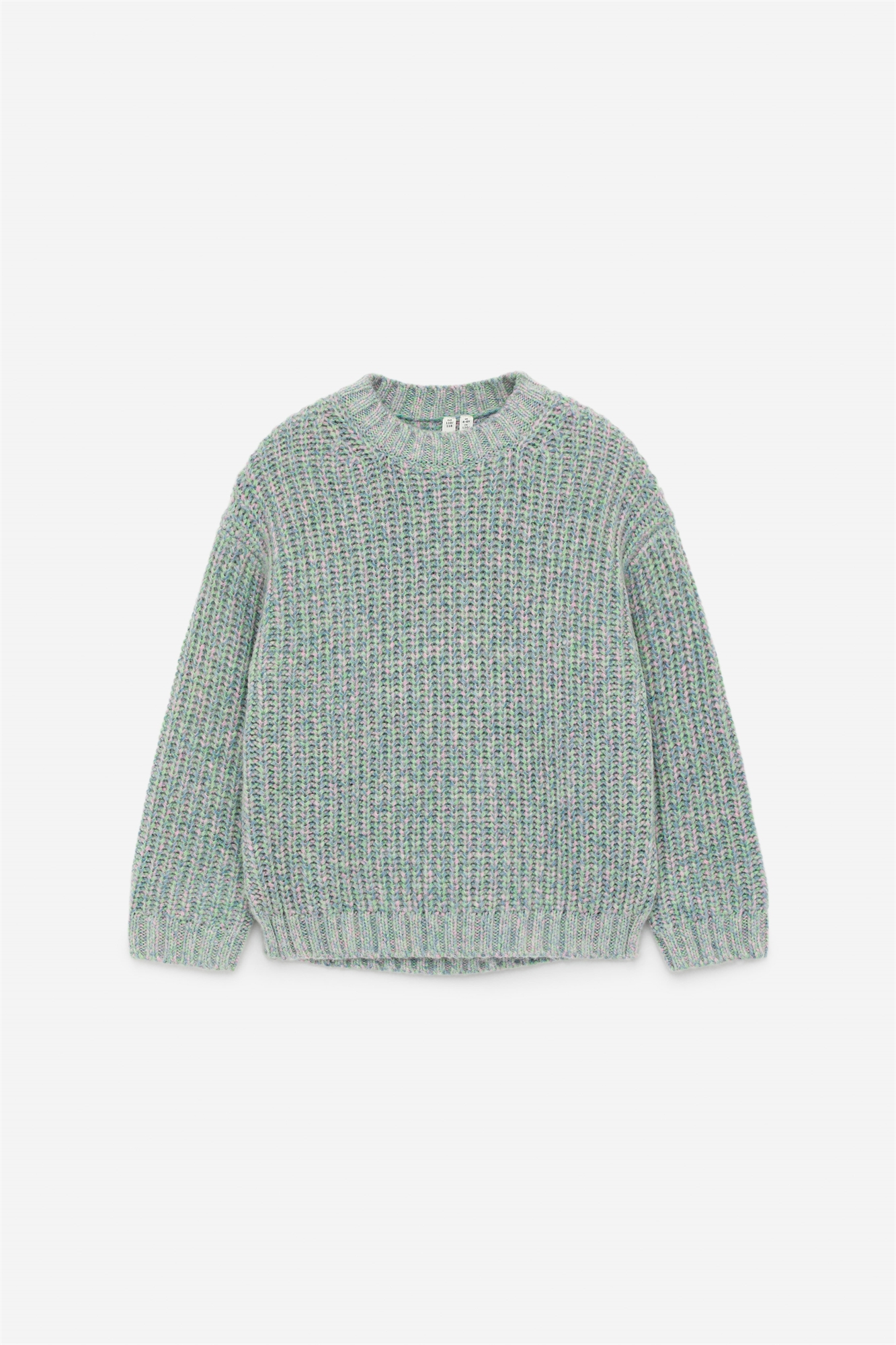 Вязаный джемпер из смеси шерсти и хлопка, окрашенной в космические цвета. Свободный крой и ребристая отделка. Разрезы по бокам. Этот джемпер содержит 45% шерсти RWS, сертифицированной контрольным союзом 815571. Продукция, сертифицированная по стандарту ответственной шерсти (RWS), содержит шерстяное волокно с ферм, прошедших независимую сертификацию на соответствие требованиям по благополучию животных и землепользованию.