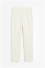 Брюки из тканого материала со скрытой эластичной резинкой на талии, ширинкой на молнии и удлиненным поясом со скрытыми застежками-крючками. Диагональные боковые карманы и втачные карманы сзади. Зауженные прямые ноги со складками спереди и сзади.