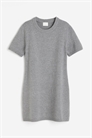 Короткое приталенное платье из мягкого трикотажа с круглым вырезом и короткими рукавами. Окантовка по вырезу, манжетам и подолу.