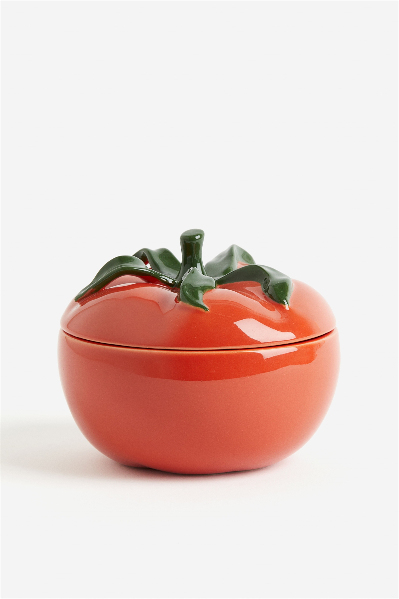 Банка с крышкой из керамогранита в форме овоща с реактивной глазурью, которая создает красивую, пеструю окраску и придает каждому изделию уникальный вид. Эта банка - художественное и функциональное дополнение к декору вашей кухни.