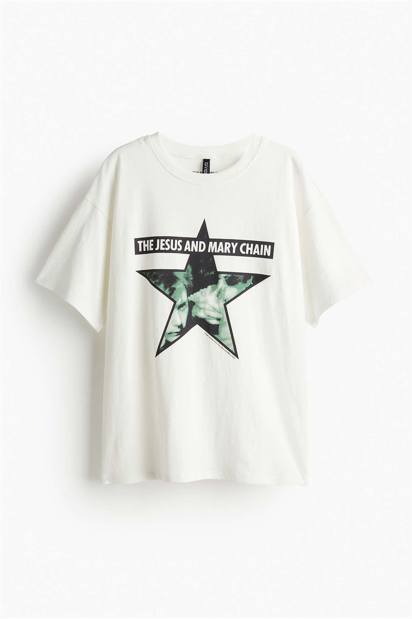 Футболка оверсайз из мягкого хлопкового джерси с принтом. С ребристым вырезом, спущенными плечами и прямым подолом.