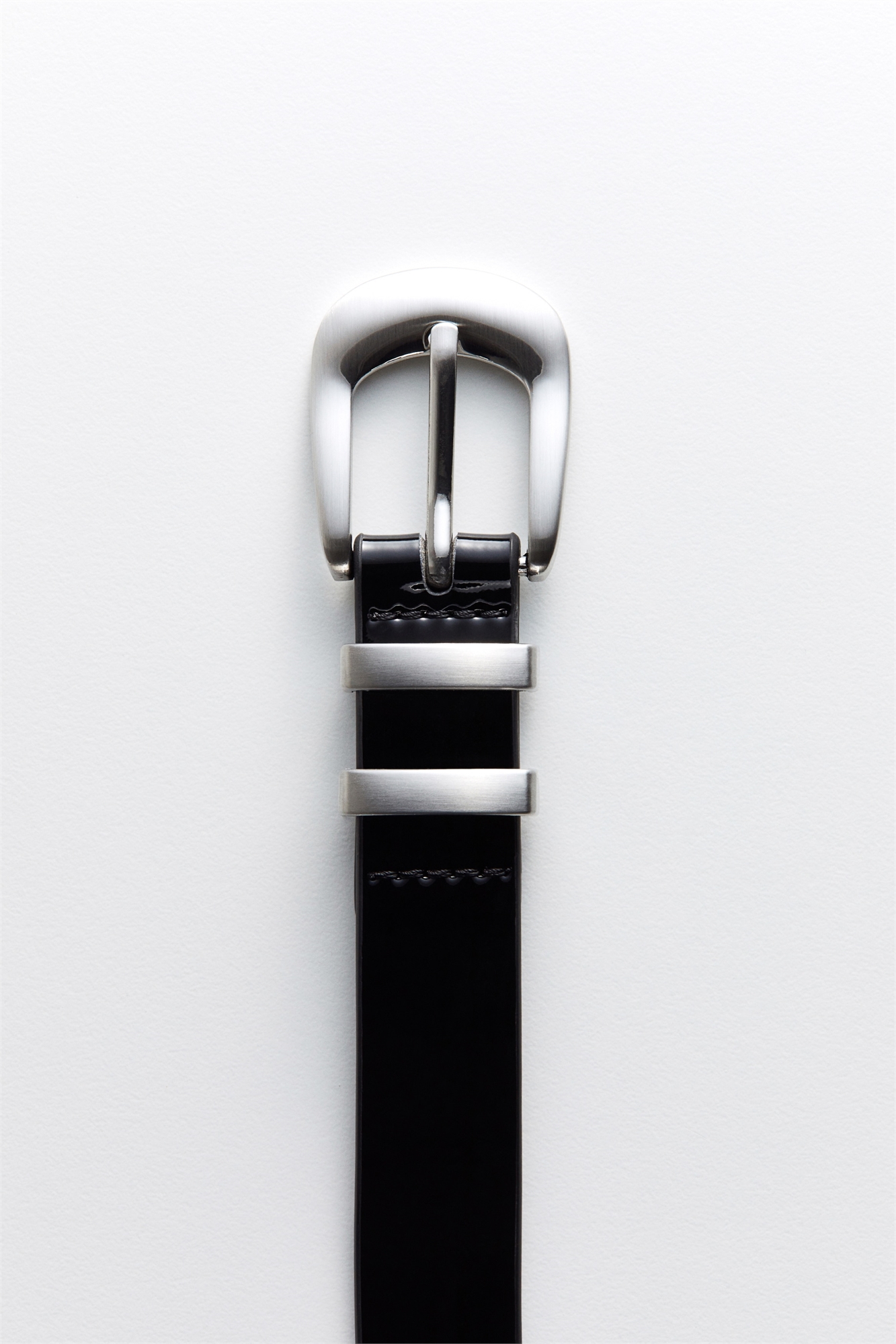 Ремень из мягкой кожи с металлической пряжкой. Ширина 2,5 см.