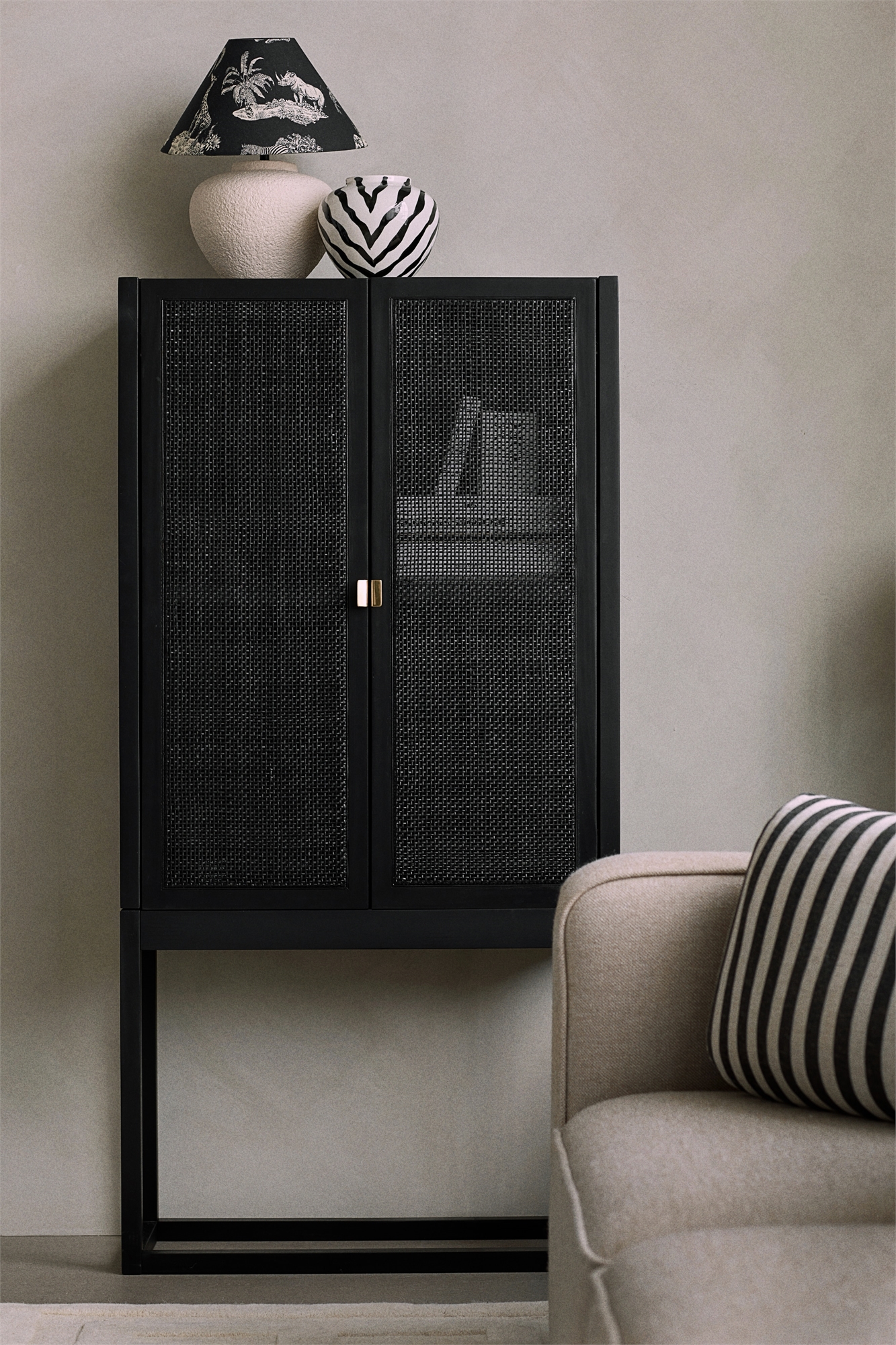Шкаф из дерева с дверцами и боковыми стенками из ротанга, обеспечивающий достаточное пространство для хранения и придающий вашему дому природное очарование. Две полки. Поставляется в плоской упаковке, готов к сборке. Винты входят в комплект. Глубина 30 см. Ширина 75 см. Высота 150 см.