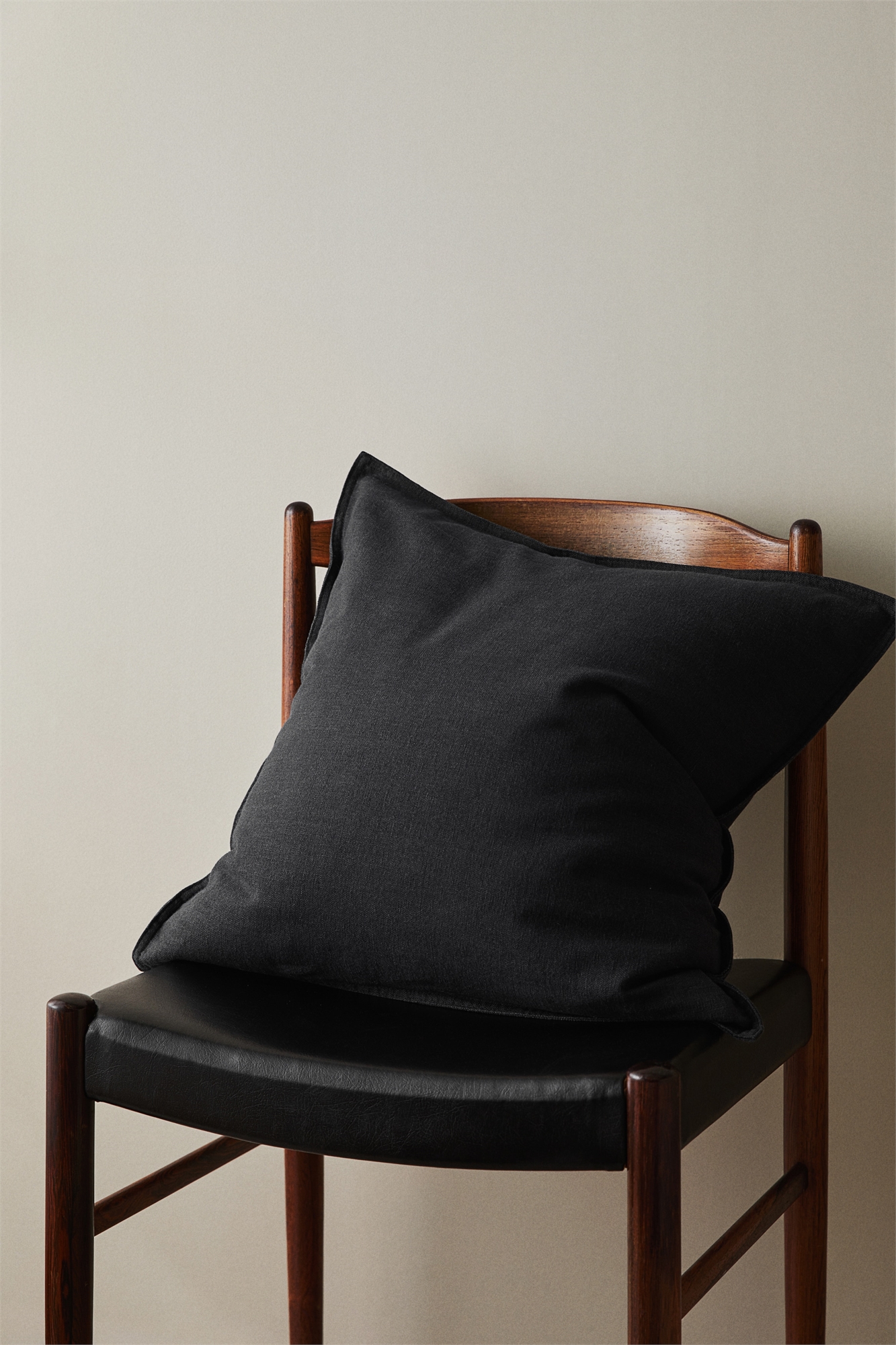 Нестареющий чехол для подушки из льна и хлопка с отстрочкой по бокам и потайной молнией сзади.