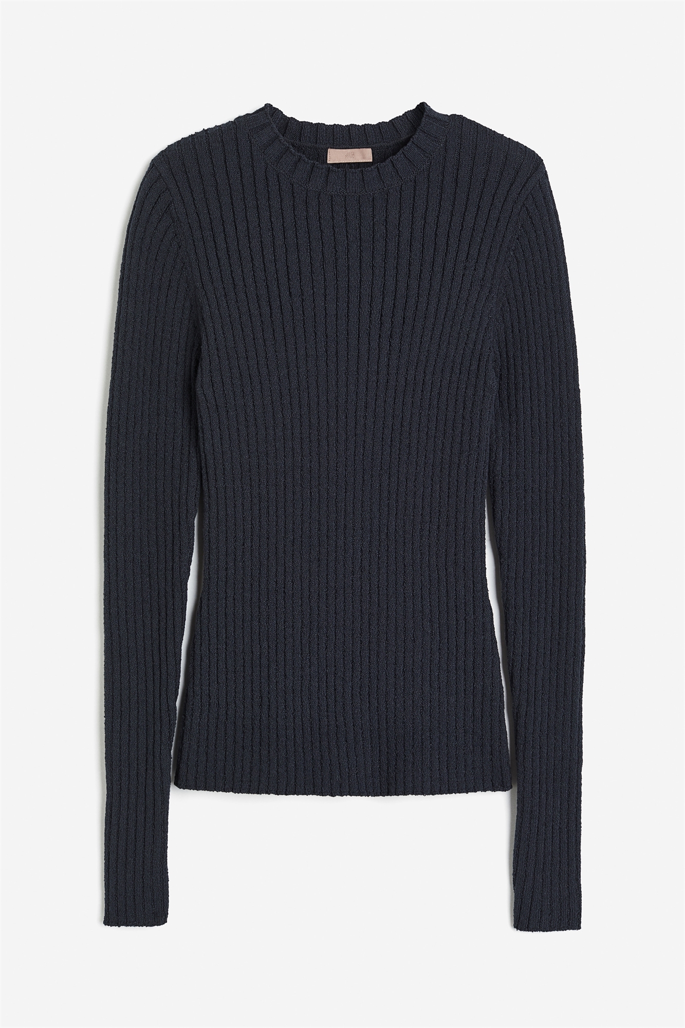 Облегающий топ из мягкого трикотажа в рубчик с круглым вырезом, длинными рукавами с разрезом на манжетах и прямым подолом.