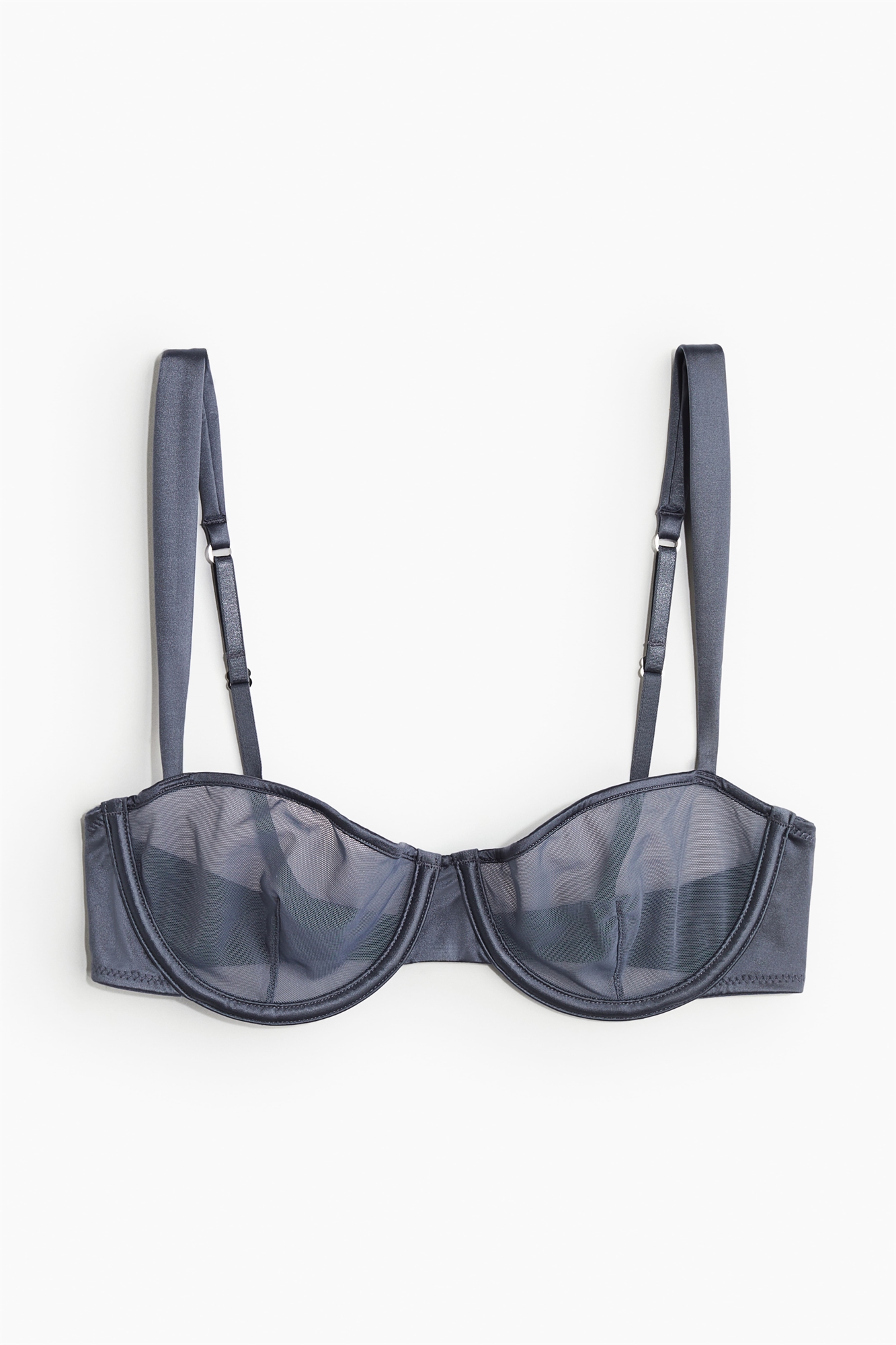 Бюстгальтер-балконет из сетки с чашечками без подкладки, которые придают бюсту естественную форму и обеспечивают легкую поддержку. Регулируемые бретели и регулируемая застежка-крючок сзади.