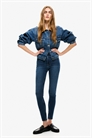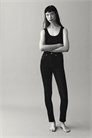 Джинсы с 5 карманами из эластичного денима с зауженной посадкой от талии до подола. Высокая талия, ширинка на молнии и пуговице.