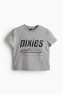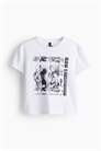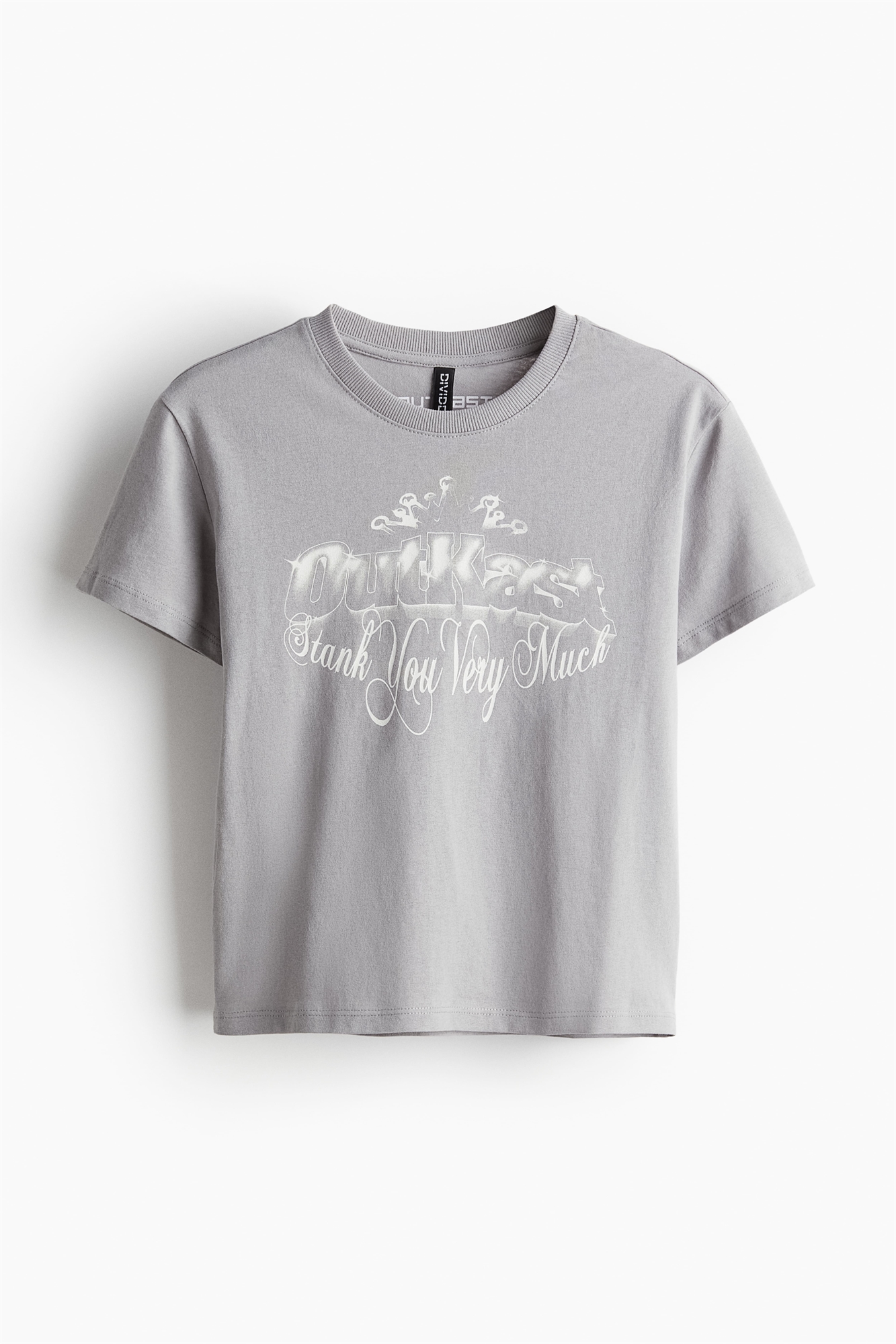 Короткая приталенная футболка из мягкого хлопкового джерси с принтом спереди. Ребристая отделка по вырезу горловины и прямой подол.