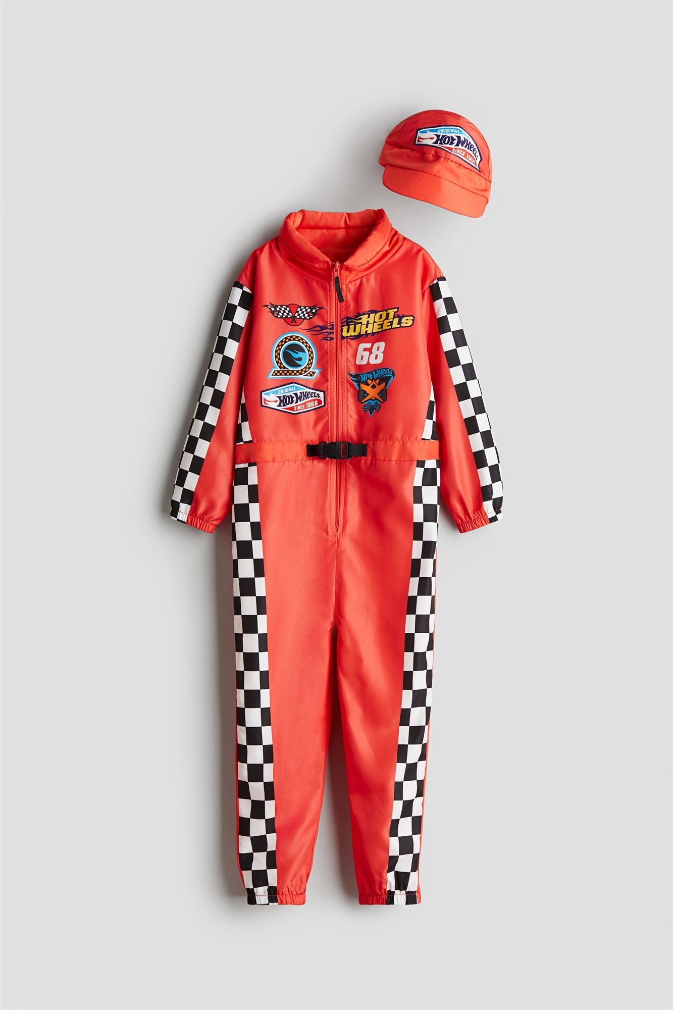 Маскарадный костюм из набивного трикотажа, вдохновленный гоночным костюмом Hot Wheels. Воротник-стойка с подкладкой, застежка-молния спереди и эластичная талия с пластиковой застежкой спереди. Длинные рукава и ноги с эластичной отделкой на манжетах и подол. В комплект входит соответствующая шапочка, выполненная в виде колпачка с эластичной вставкой сзади для удобной посадки на голове. Костюм создан для долгого использования и любви - заботьтесь о нем, передавайте его по наследству, ремонтируйте и перерабатывайте.