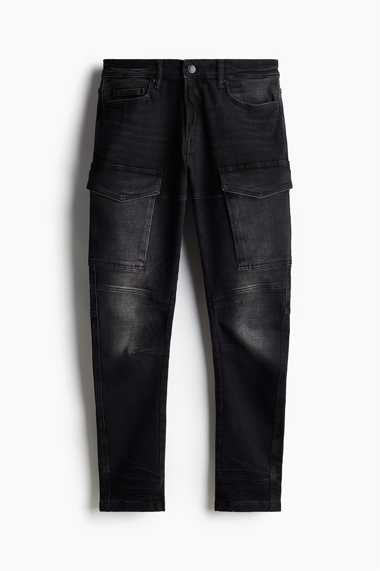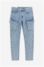 Джинсы карго из хлопкового денима с легким стретчем для комфорта. Прямые штанины и зауженный крой от талии через бедра к подолу. Регулярная талия и ширинка на молнии, боковые карманы, карман для монет, задние карманы и накладные карманы на ногах. Идеально сочетаются с простой футболкой.