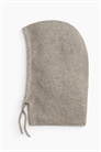 Балаклава из мягкого трикотажа в рубчик с утягивающим шнурком спереди.