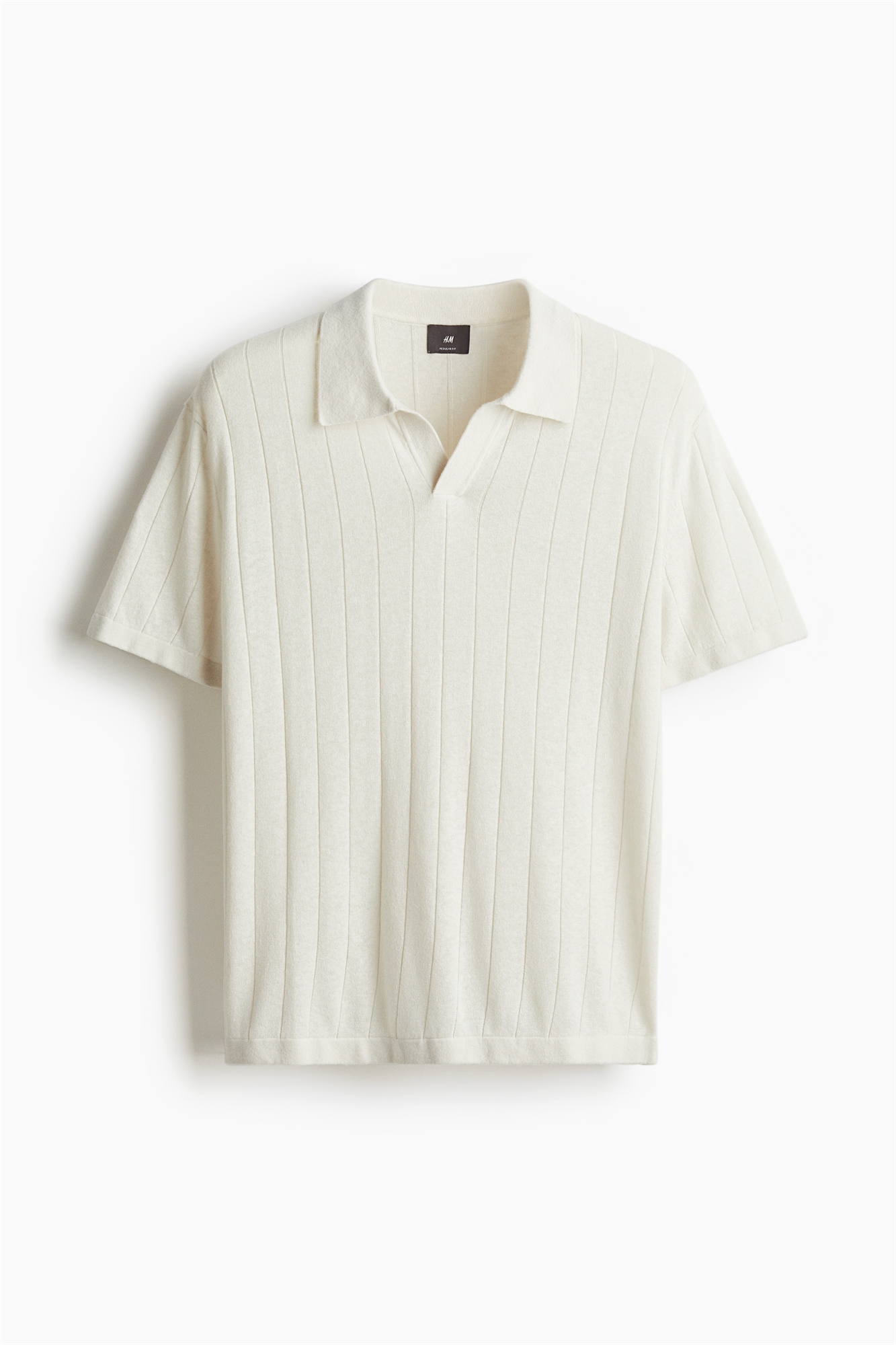 Рубашка-поло из тонкого льняного трикотажа в рубчик с воротником, небольшим V-образным разрезом в верхней части и короткими рукавами. Ребристая отделка на манжетах и подоле. Регулярный крой для комфортной носки и классического силуэта.